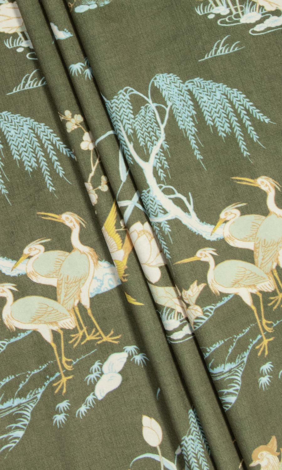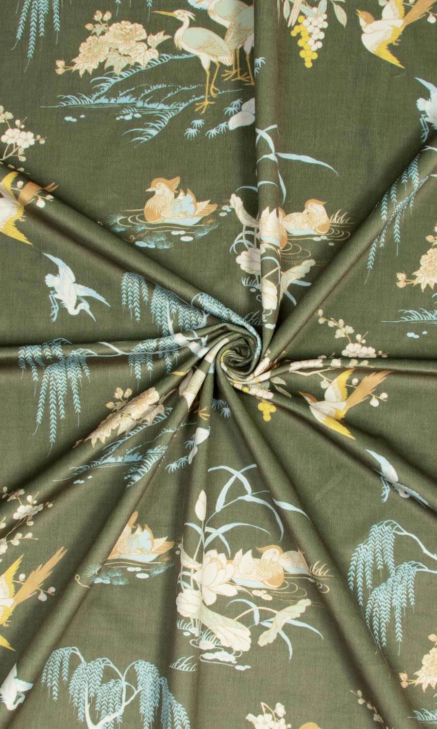 If you love earthy tones and nature themes, here?s a wonderful way to flaunt it. This splurge-worthy olive green velvet is for those who love patterns but are not overwhelmed by statement window treatments. Inspired by the traditional chinoiserie and toile motifs, the candid moments of our winged friends have been captured in this velvet print. With an army of indoor plants around, you can easily mimic a jungle and dine al fresco right within your home.