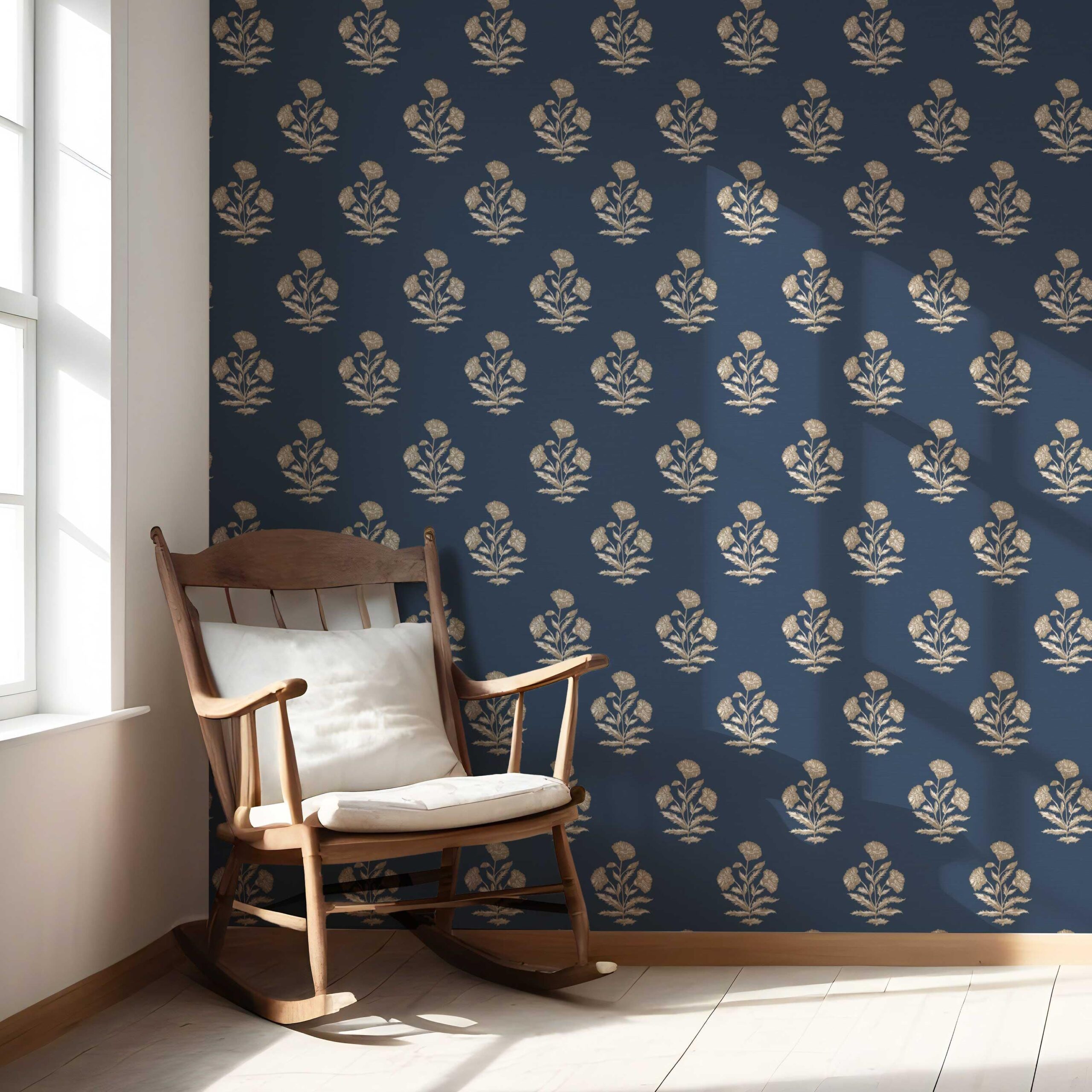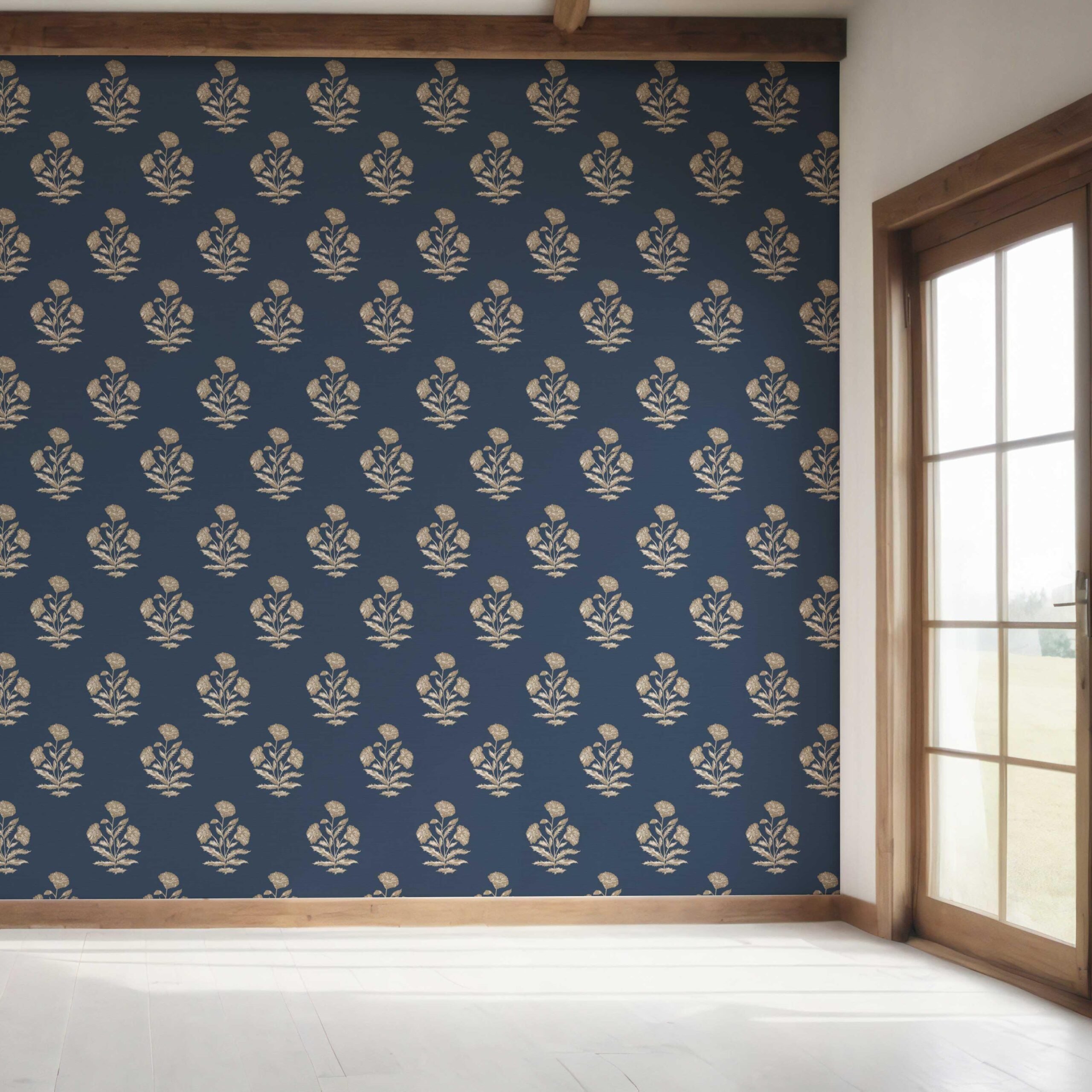 NON-PASTED: ‘Shikara’ is an unpasted wallpaper installed by applying adhesive paste (not provided by us, but easy to source) to the wall. While peel-and-stick papers do not leave much room to change the paper’s position once you start applying it, the traditional, non-pasted application is more forgiving, allowing for better positioning when matching patterns.