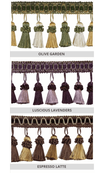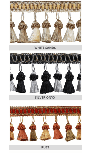 Dress up your custom custom curtains with our delightfully rich tassel trims.