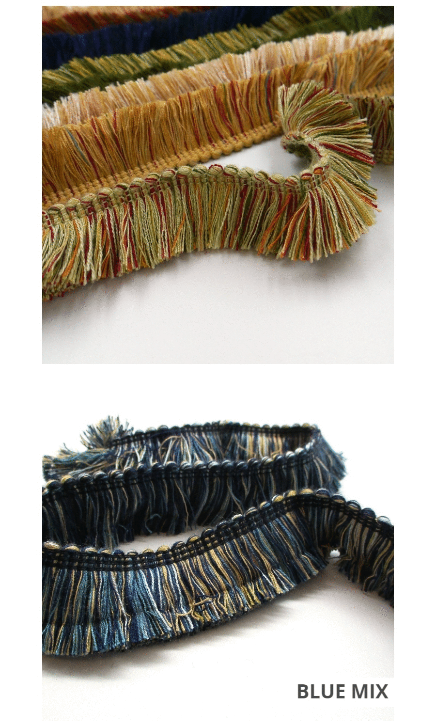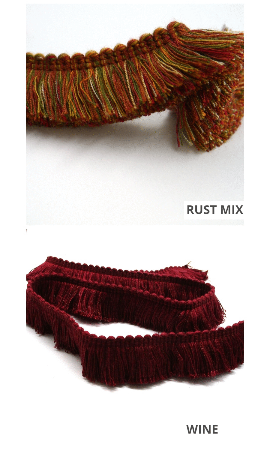 Dress up your curtains with these full and thick, viscose brush fringe trims. This fashionable trim is available in 11 colorways – giving options for every space and palette. The 30mm fringe has a silkier texture than the cotton equivalent, giving it a luxurious feel.