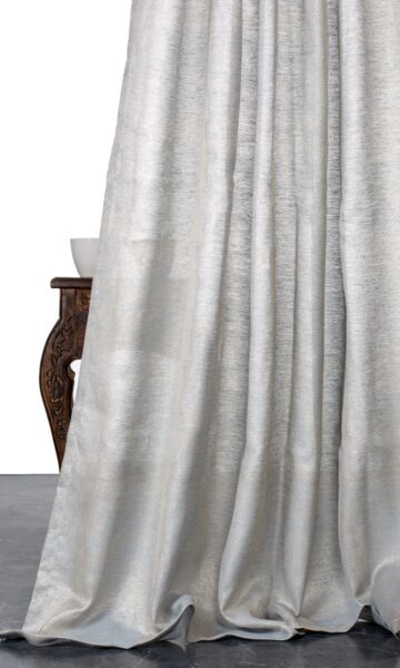 A fabric shrouded by the shine of golden stars! Regality and glamour blend in this shimmering blue-gray sheer that paints the interiors with aureate luster, diffused light and gauzy texture. Let this diva add glamor to a formal living room, pizzazz to a Hollywood regency bedroom or echo the accents of metallic and jewel-toned damask wallpapers in traditional spaces.