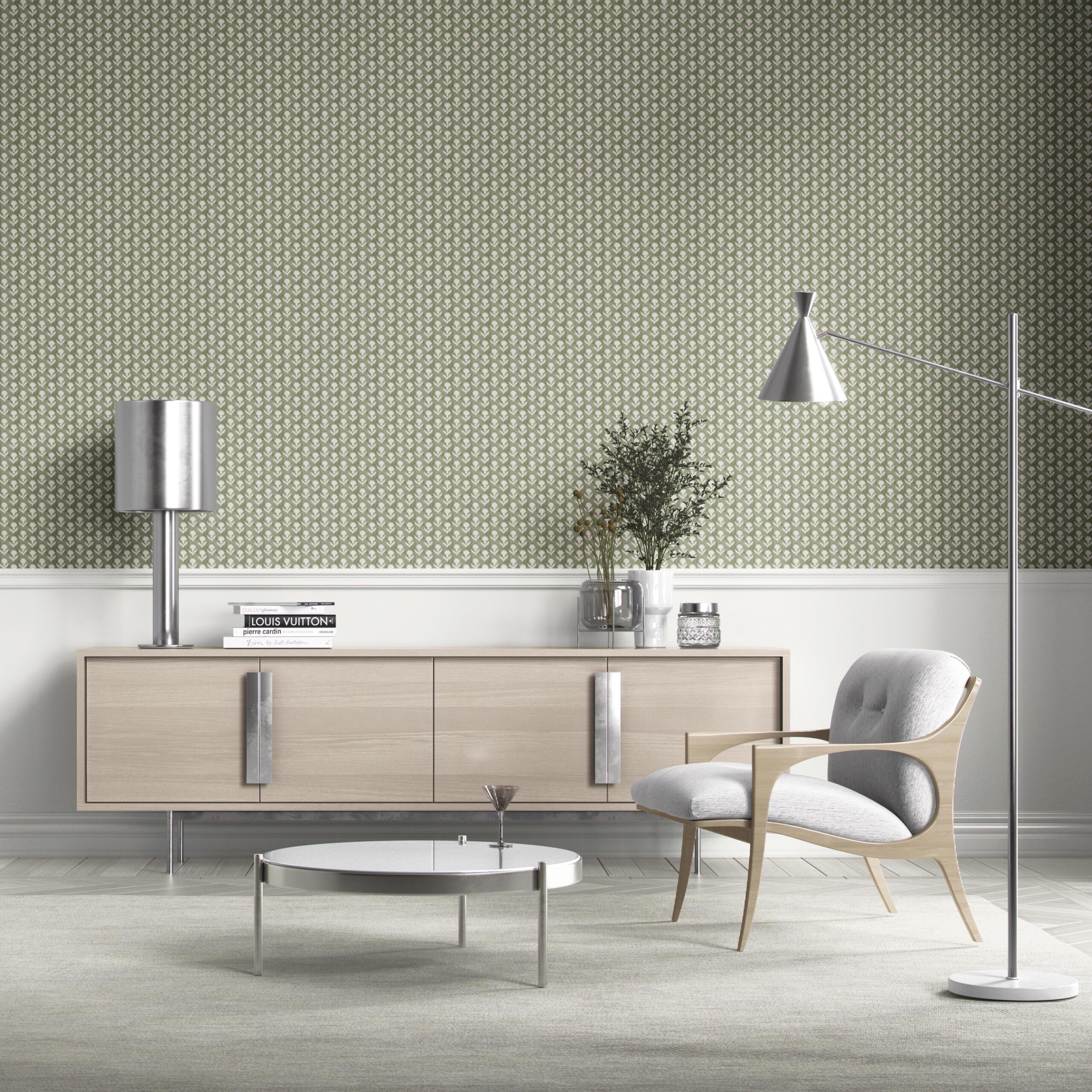 NON-PASTED: ‘Sion’ is an unpasted wallpaper installed by applying adhesive paste (not provided by us, but easy to source) to the wall. While peel-and-stick papers do not leave much room to change the paper’s position once you start applying it, the traditional, non-pasted application is more forgiving, allowing for better positioning when matching patterns.