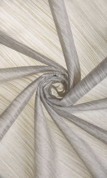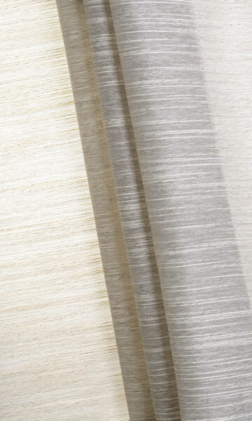 To see how magnificent grays can be, just look at Sirf. This sheer drapery fabric has a monochrome taupe-on-gray color scheme. The translucent base fabric of pale gray is woven from edge to edge with closely set, opaque and irregular stripes in taupe and pale gray. Sirf is a sophisticated option to give your room a subtle air of refinement.