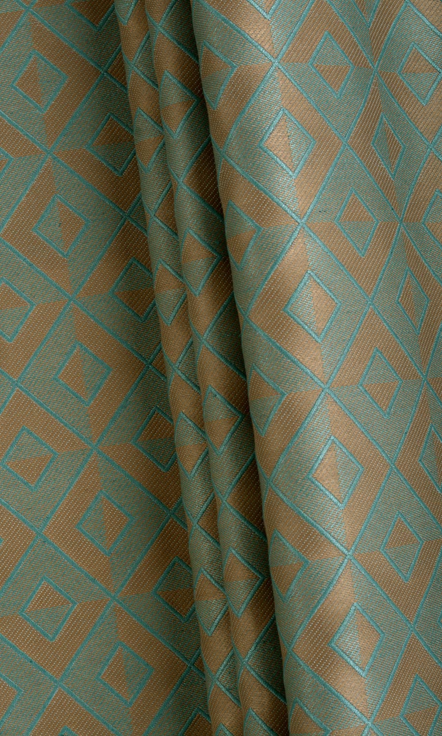 If you like geometric patterns but want more than simple checks, Smeh is a fair choice. This sturdy woven fabric has a charming diamond check pattern with color play that creates complex visual impressions reminiscent of mosaic tiles. The color palette is an elegant one with turquoise and deep beige. A sober choice that’s high on aesthetics.