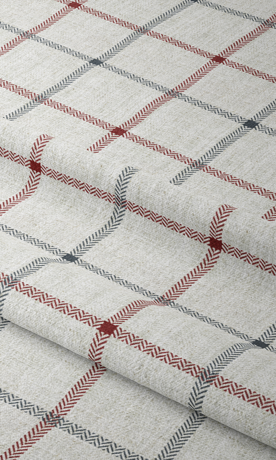 This rich grand scale check is a celebration of the classic. Inspired by traditional plaid check, but brought up to date with its trend right palette of deep red, cream and slate grey. Woven on a rich, herringbone weave base, this is the fabric to bring glamour in an instant.?