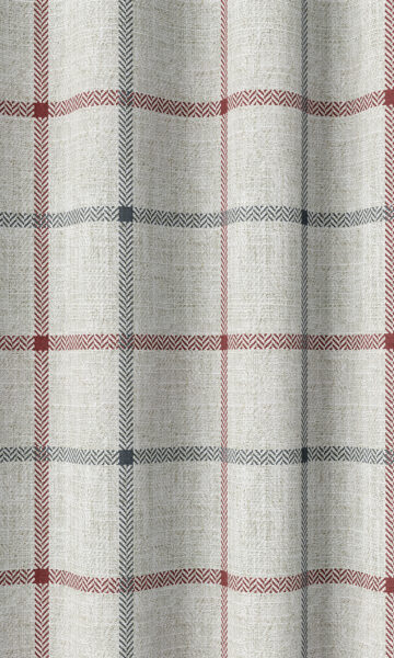 ‘Smoke’ Check Patterned Custom Size Drapes (Linen White/ Red)