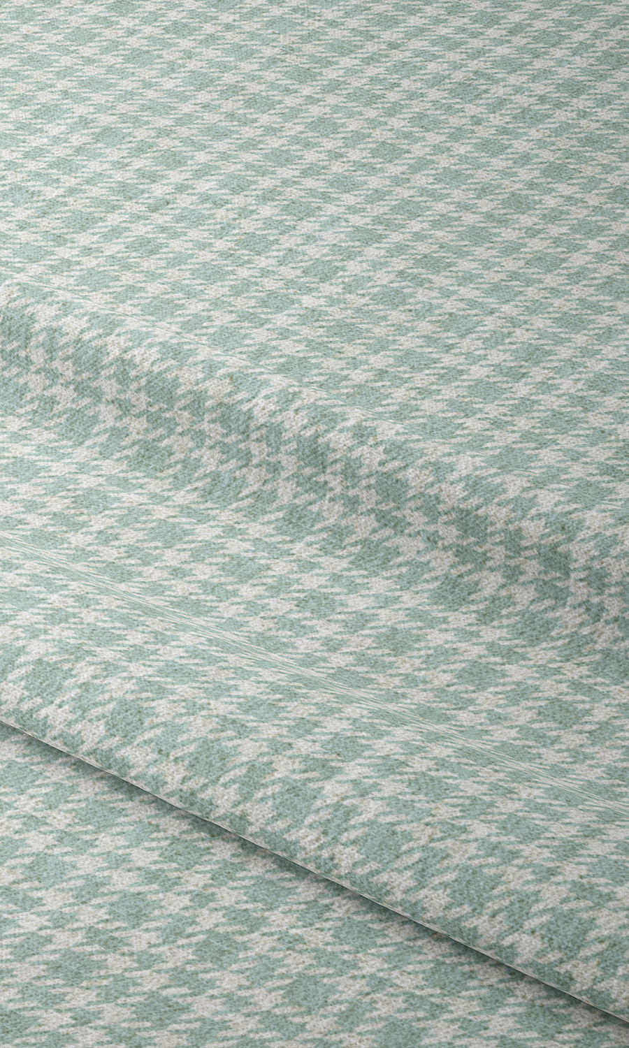 Featuring an oceanic color palette of aqua blue and eggshell white, this lovely fabric promises to pair well with virtually any neutral and decor style. While its all-over houndstooth pattern evokes traditional style, it’s equally at home in transitional or contemporary spaces. Plus, the fabric’s graceful drape makes it suited for various applications such as flat panel roman shades or drapery in any heading style.