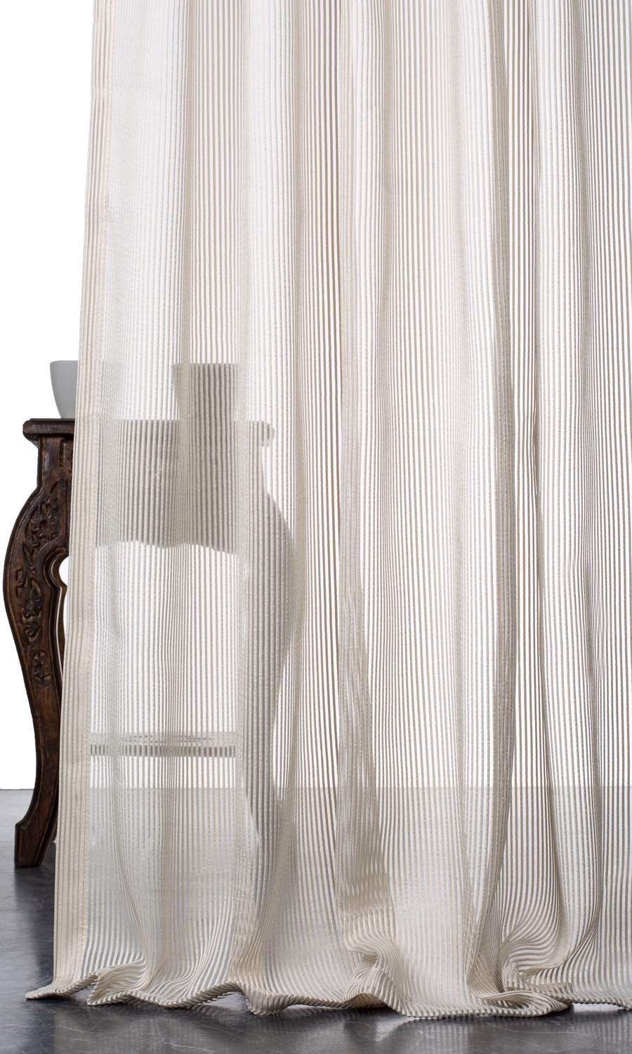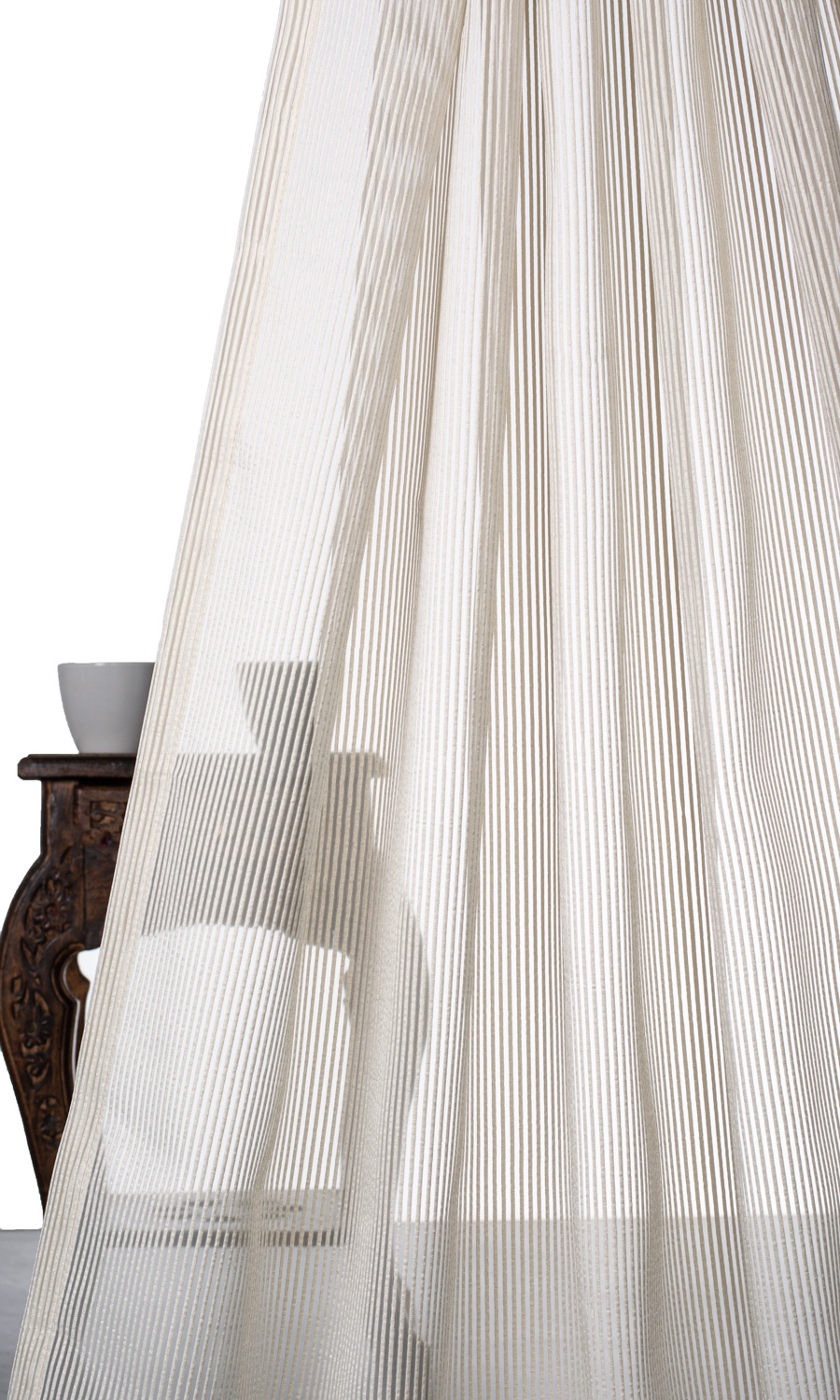 Merging two timeless themes – the immaculate beauty of beige and the simple elegance of stripes – ‘Gentle Essence’ vouches its candidature for a lifelong addition to any home. Playing hide and seek with its woven pattern, light streams into the home painting veined shadows on the walls. Finish a modern home with this self-striped sheer that offers the uncluttered aesthetic of beige and the clean-lined finishes that speak to its minimalism.