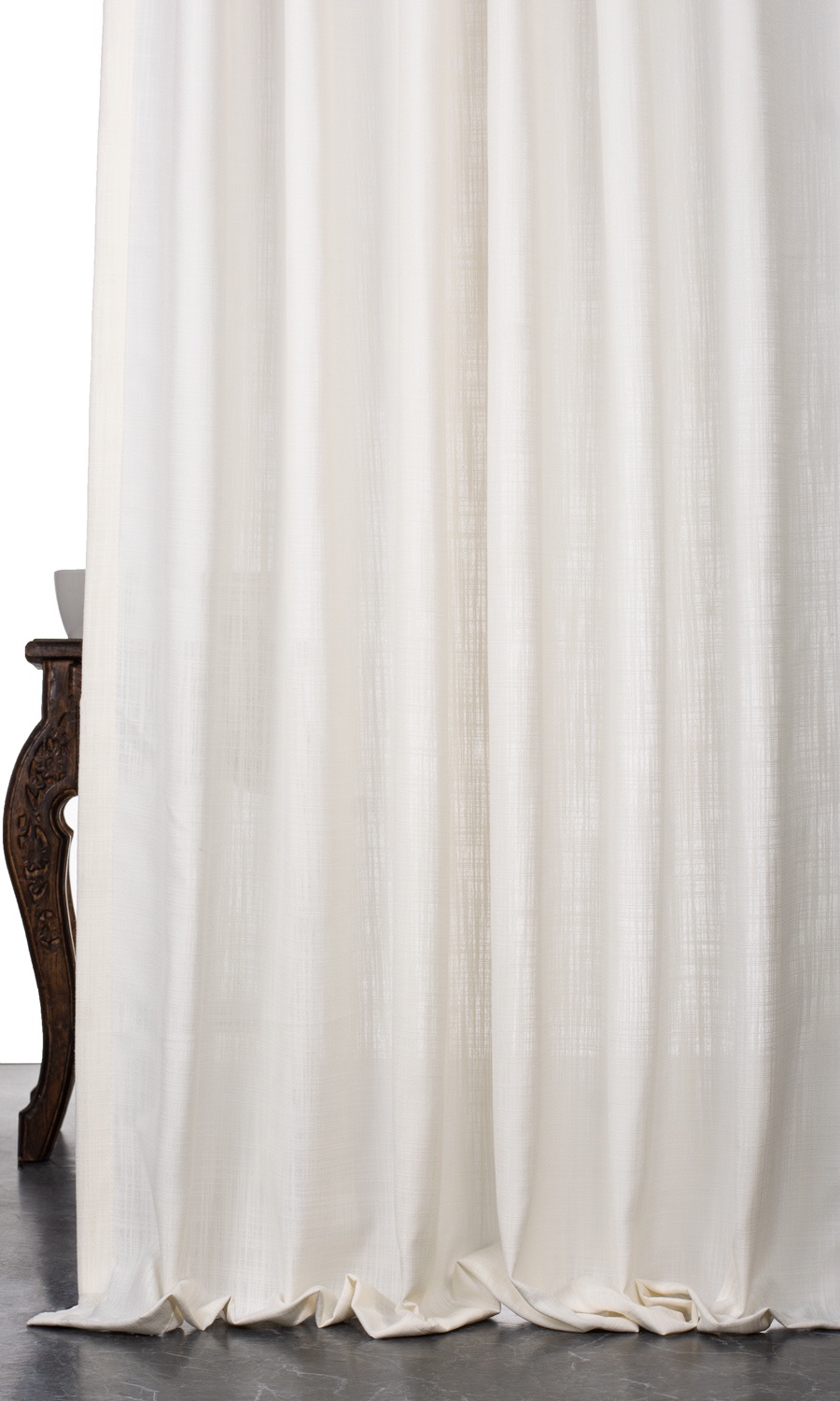 ‘Soft Lumina’ Linen-Texture Semi-Sheer Custom Drapes (Off-White)