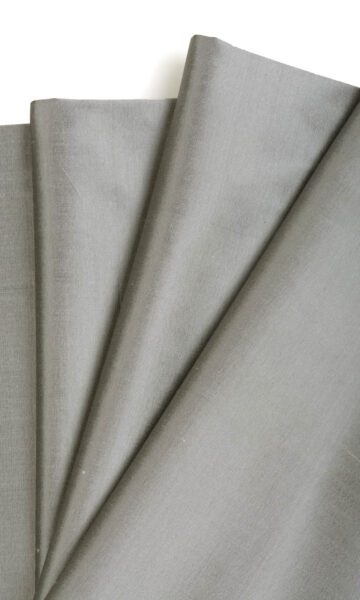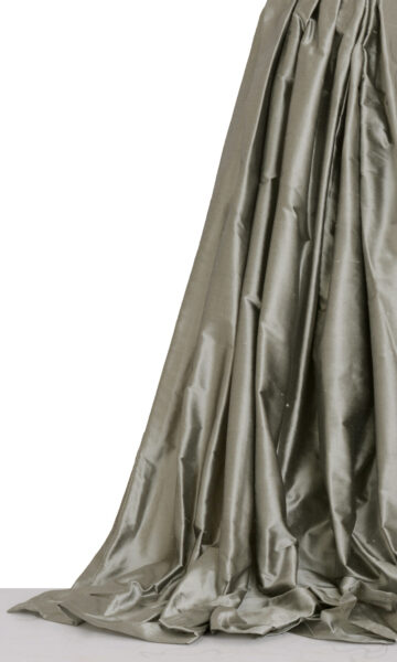 If steel were to take a silken avatar, it would surely be named Sombra. This pure silk drapery fabric has a silvery sheen reminiscent of regal ambience. It gives impeccable drape and looks fit for a palace. Its somber color is the perfect backdrop for an elegant room where good taste reigns supreme.