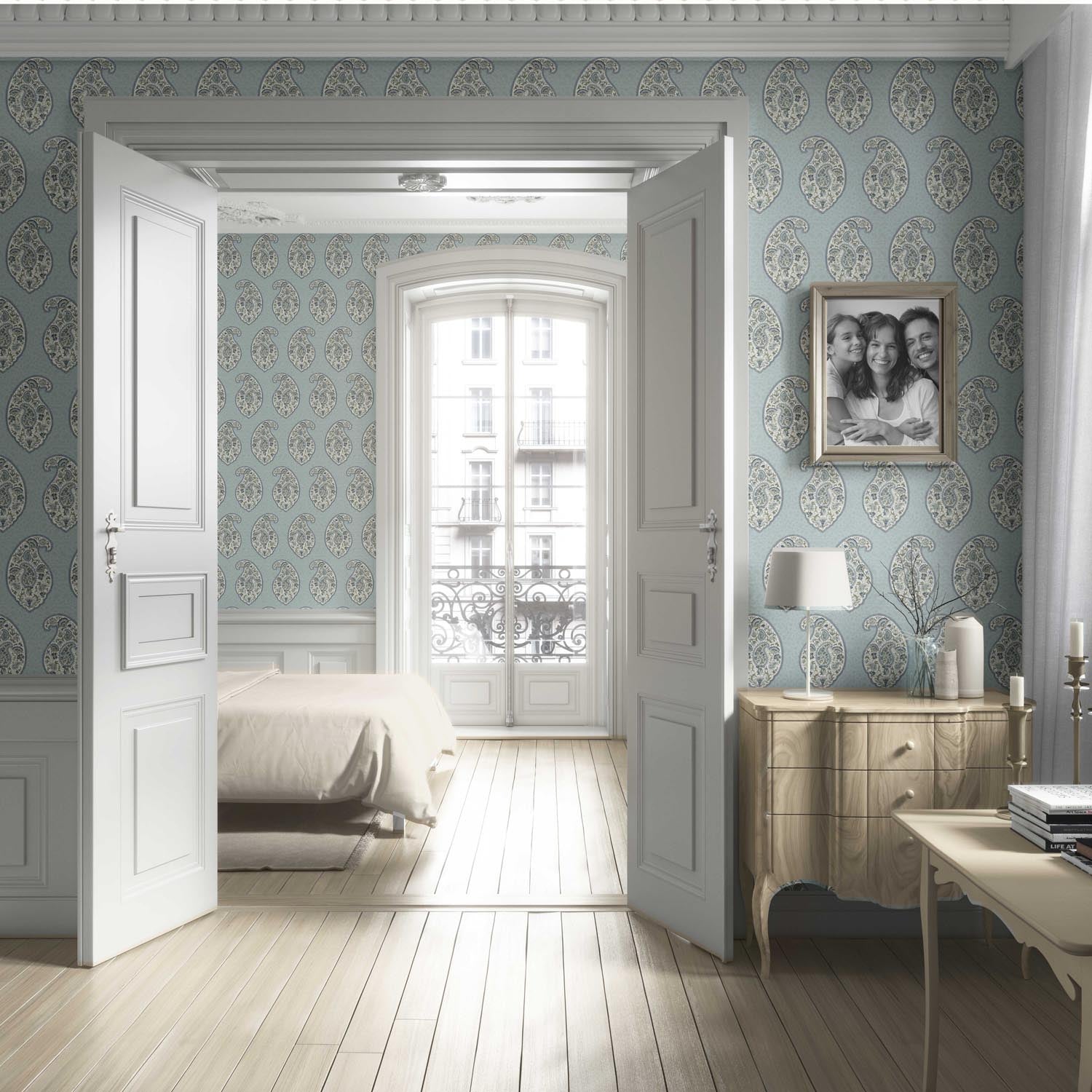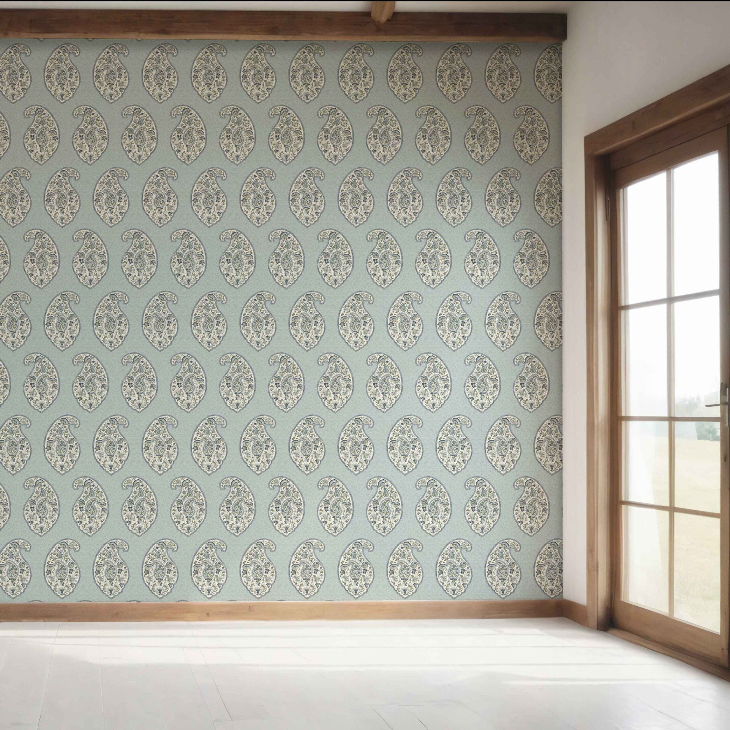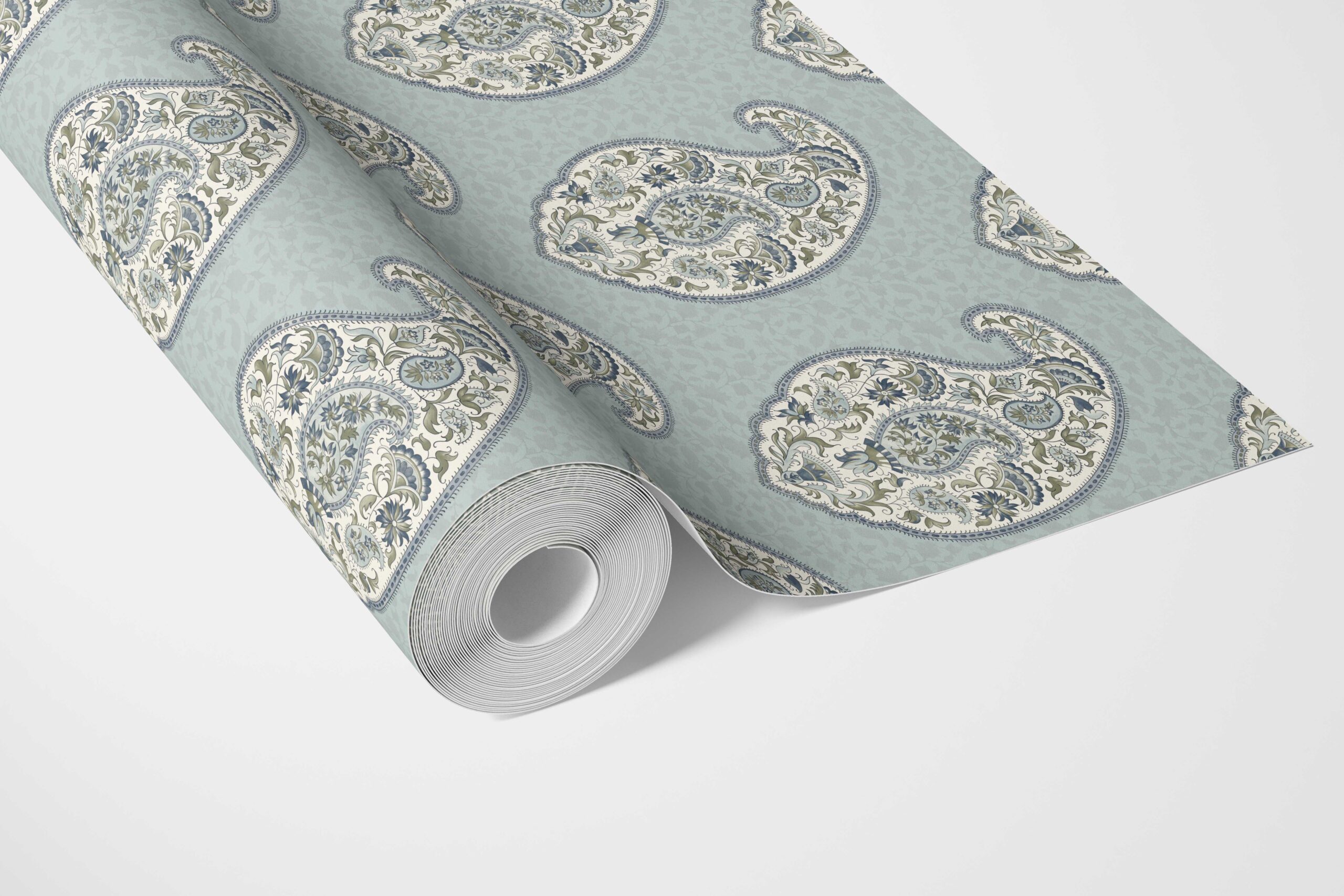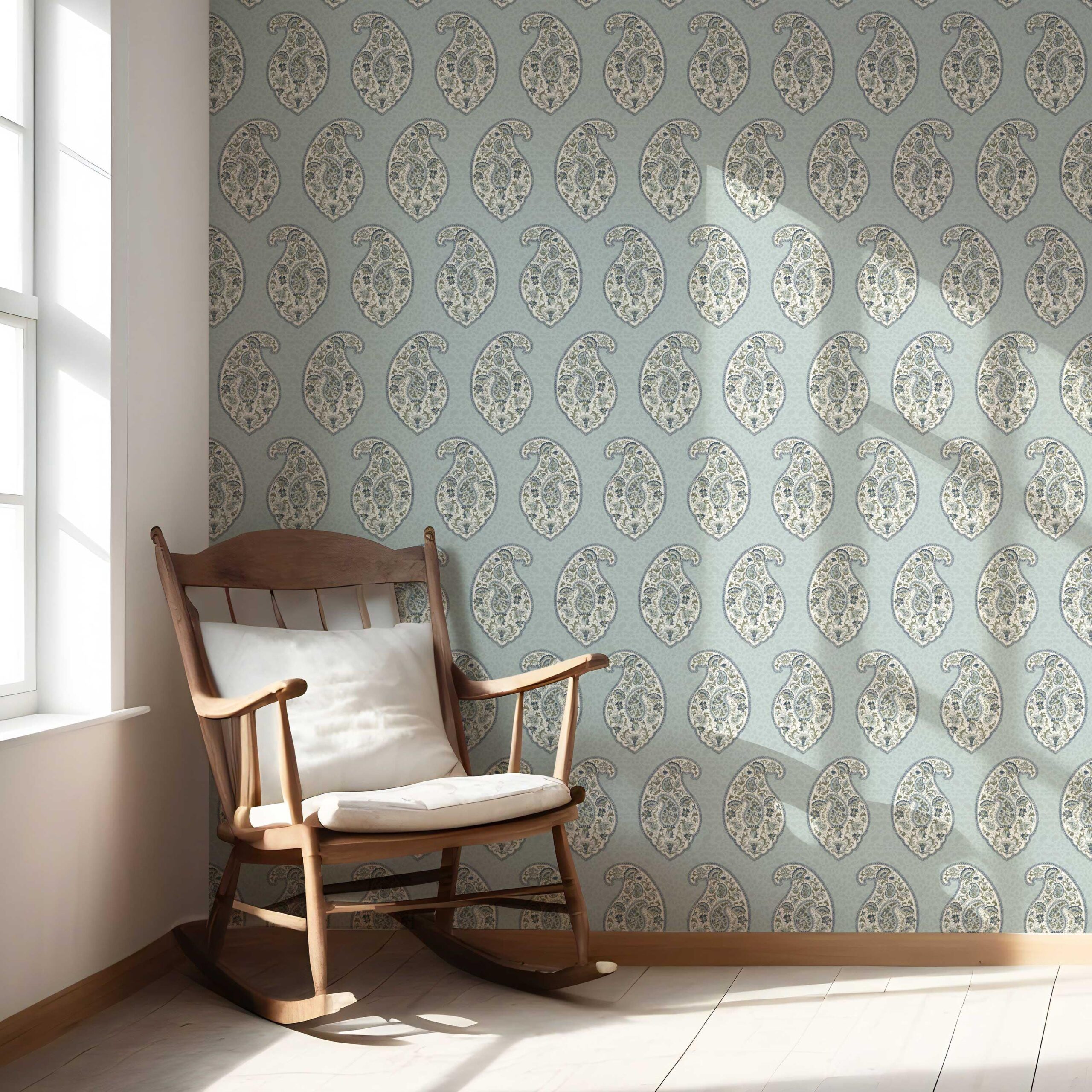 ‘Soria’ Paisley Floral Print Wallpaper (Blue/ Green/ Gray)