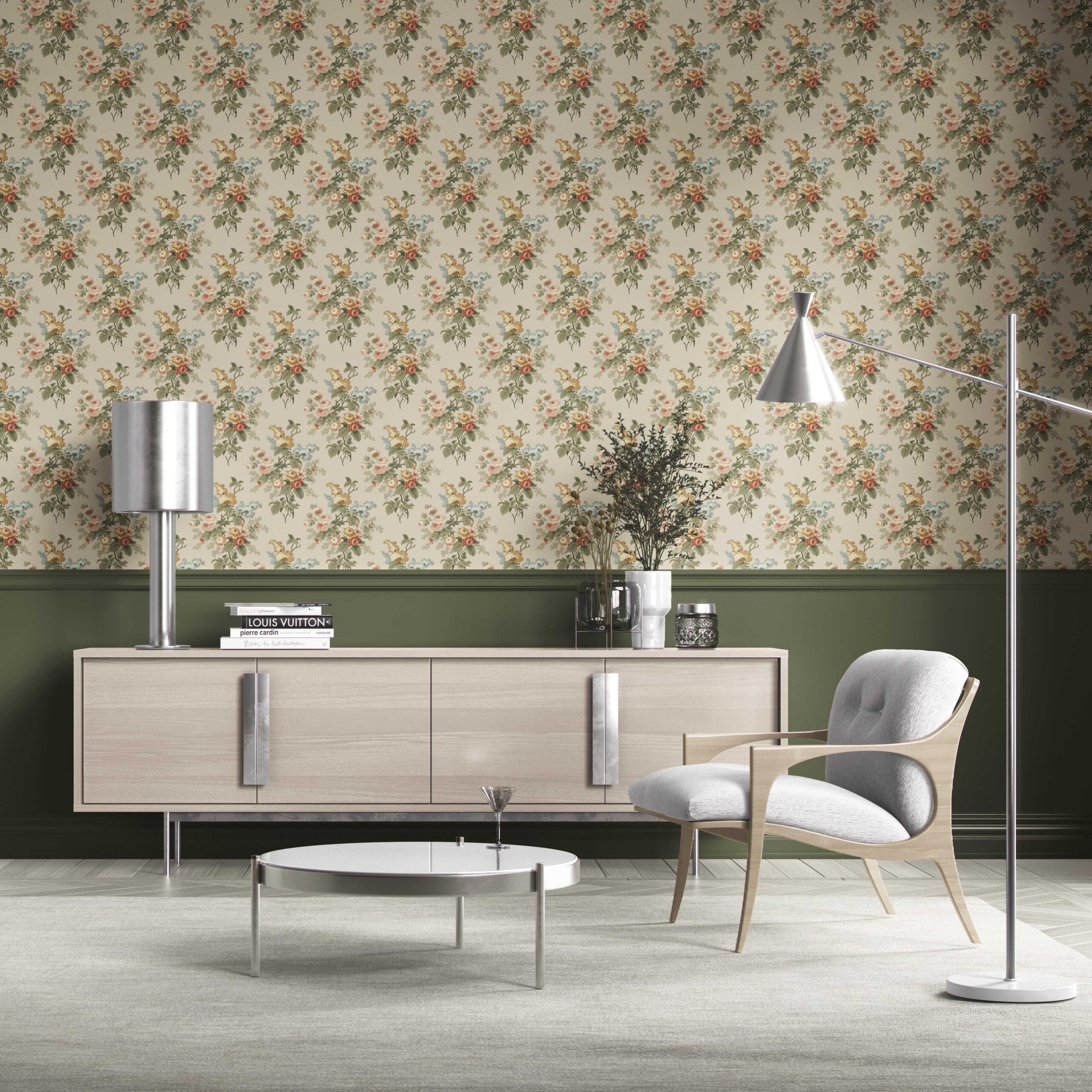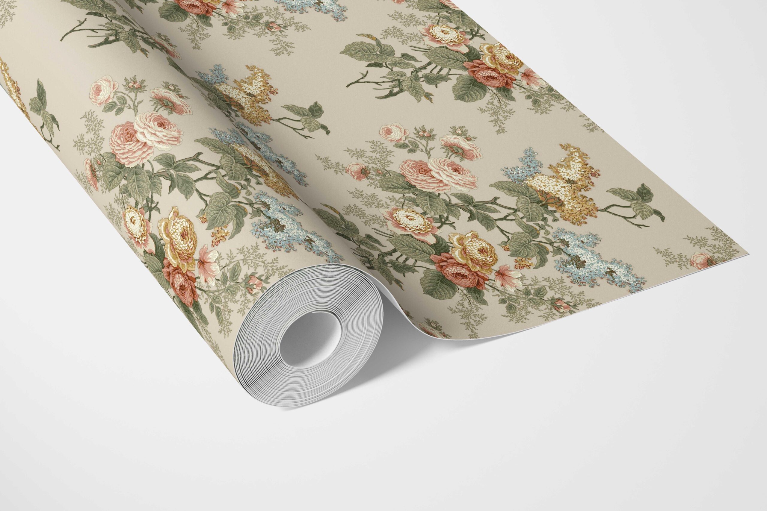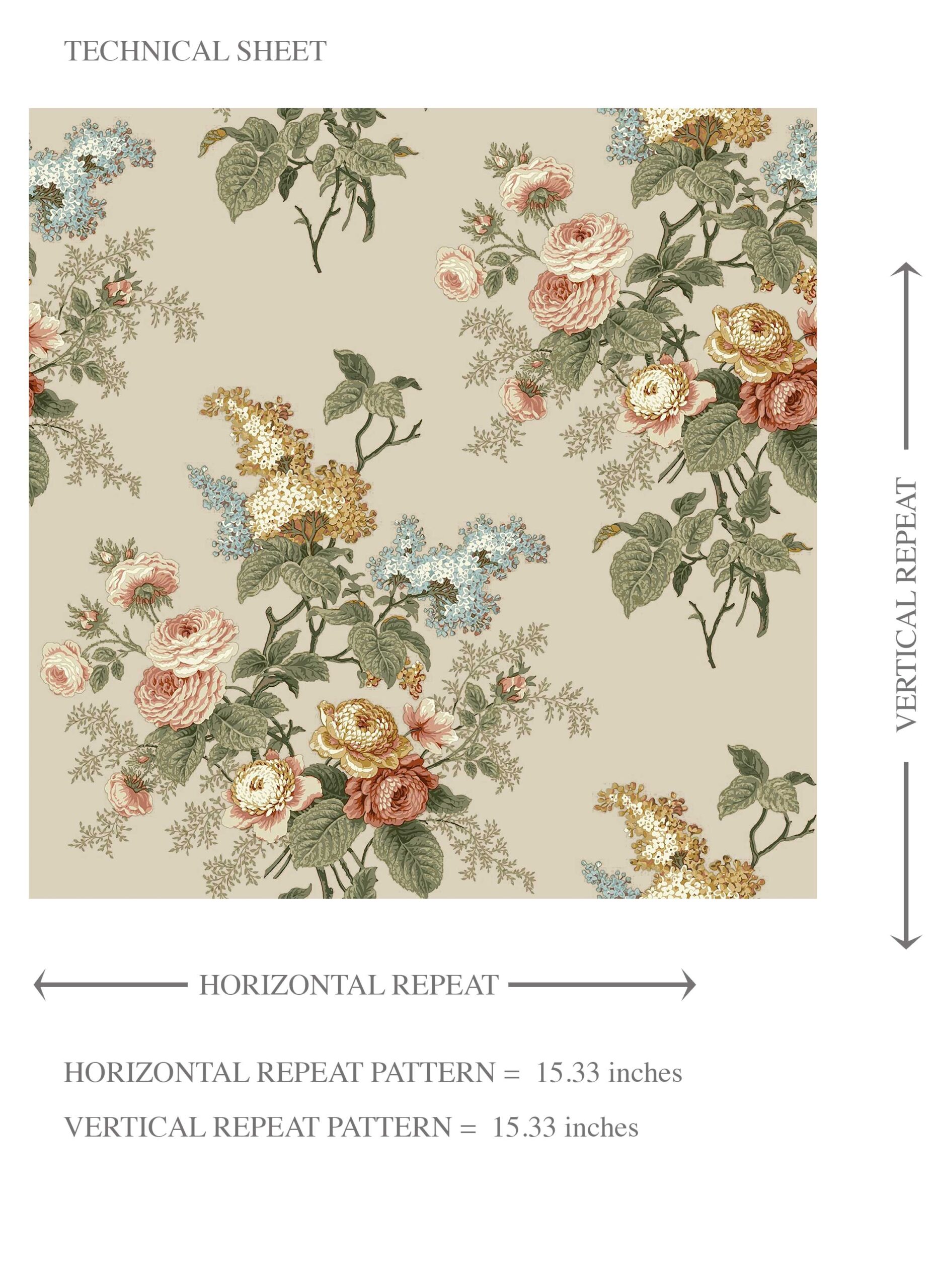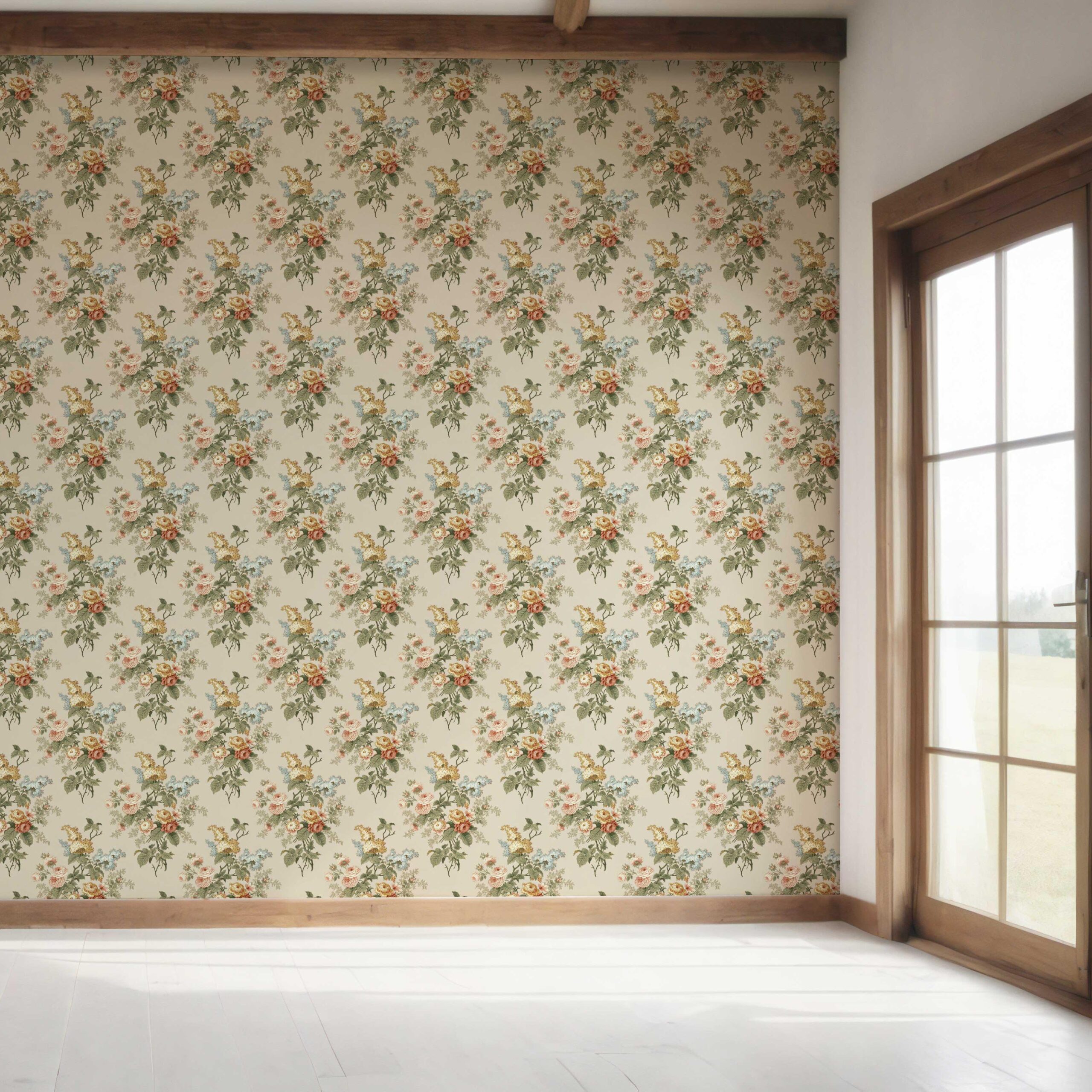 ‘Sorrento’ English Floral Print Wallpaper (Beige/ Green/ Orange/ Yellow)