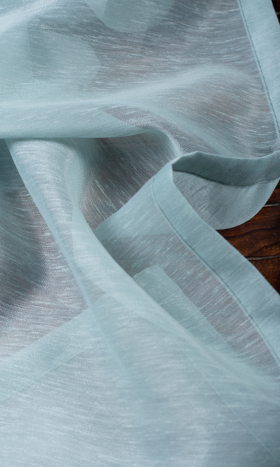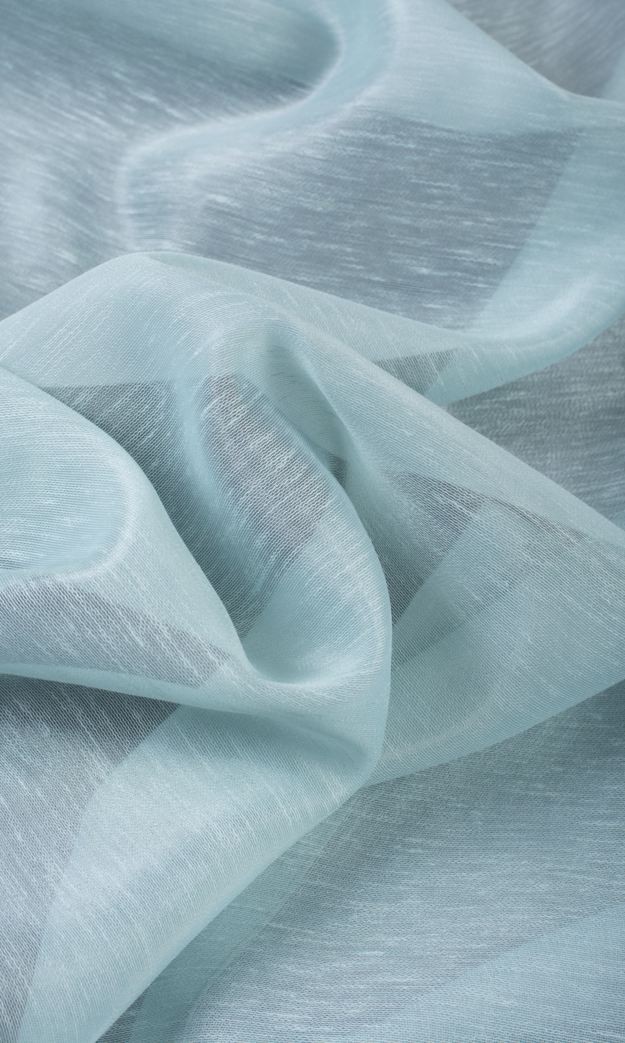 A gossamer veil spun with ethereal threads, this lovely sheer spells tenderness, serenity and grace in a cerulean whisper. Its dainty blue with lustrous white accents is the epitome of soft elegance. Make a bedroom dreamy and coastal decor complete with this charming blue fabric.