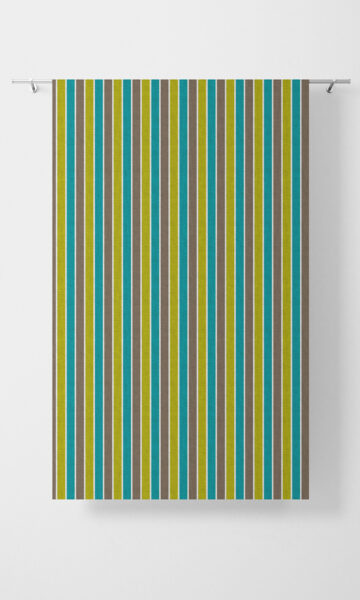 Create a cheerful mood for your living room or bedroom with this vibrant fabric. Featuring a repeating pattern of candy stripes, Crayon has a rich herringbone weave base. It boasts statement hues of tiffany blue, apple green and brown that will add a pop of pizzazz to your living space, and is suited to many different decorating styles, including contemporary, transitional and boho. We recommend showcasing this fabric in flat panel roman shades and casual style drapes.?