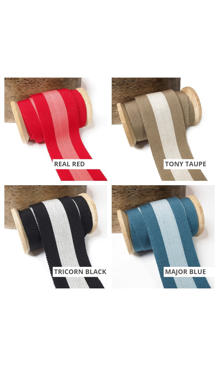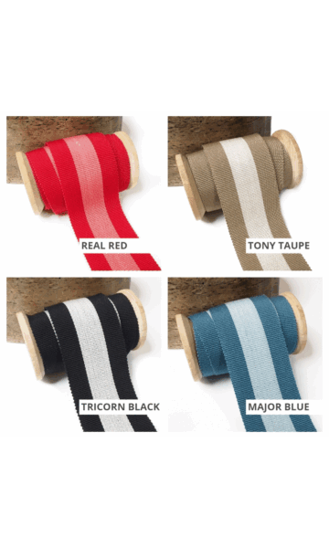 This two-tone striped ribbon trim collection is an absolute classic! In both traditional and modern colourways, this ribbon works wonderfully for roman shades in any style and placement.