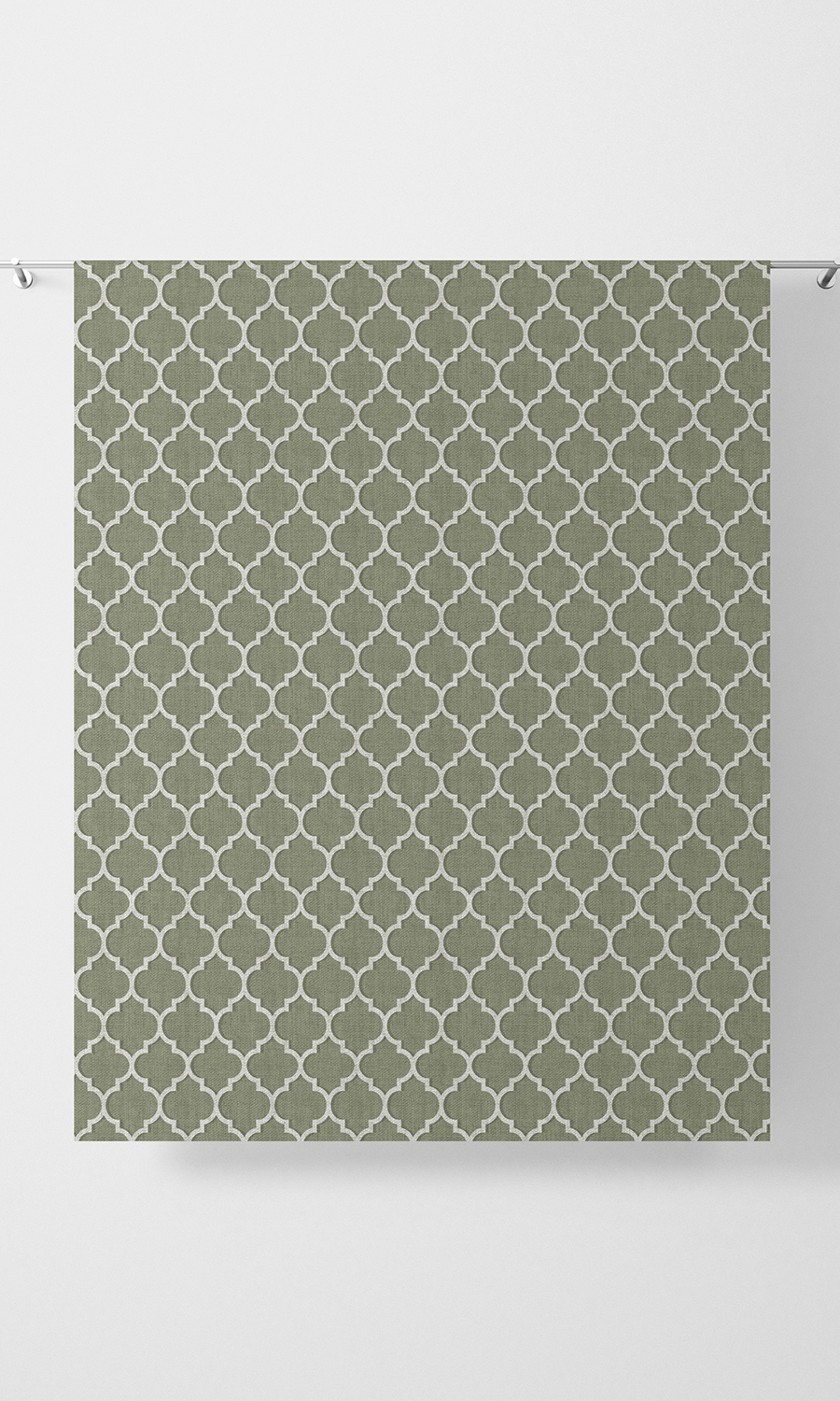 A stylistic interpretation of the classic Moroccan trellis tile pattern. Clean and geometric, it integrates ornate vintage with new age minimalism. The contemporary color palette of sage green and white enhances the understated yet unmistakably elegant appearance. Printed on a texturally rich, herringbone weave base, we recommend this fabric for curtains as well as blinds. Also a good one for gender neutral children?s rooms.