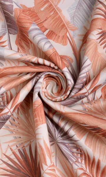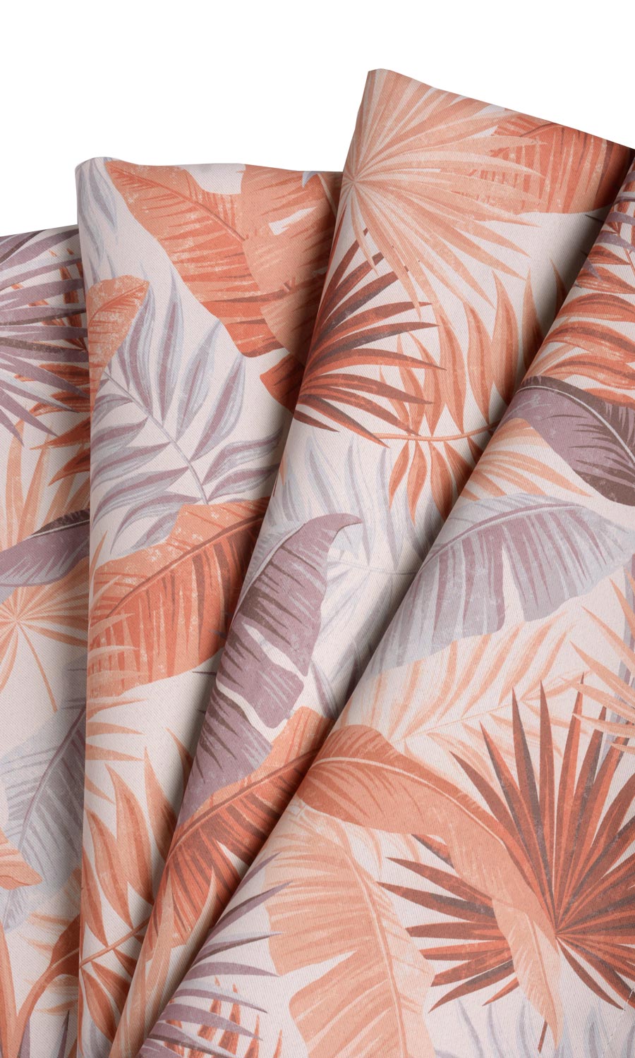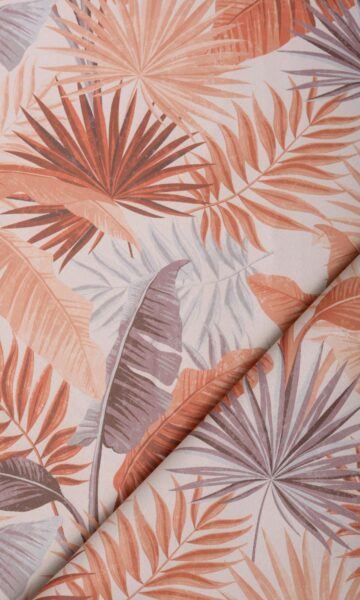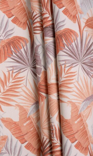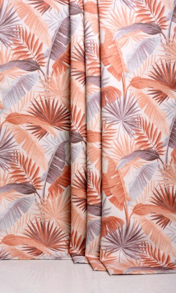 Tropical foliage in sunny hues – a drapery fabric that celebrates the sublime beauty of nature unabashedly in urban terrain! Nothing can cheer up the soul as a visual treat of a prosperously teeming verdure; dressing it up in a lively palette doubles the impact. Browns, oranges and grays shedding their mojo on a white backdrop make this window treatment a timeless decor element.