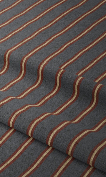 Like the look of clean stripes? This slate grey fabric with burgundy and cream ticking stripe brings warm hues in simplistic shapes. The masculine vibe sets off the curvy detailing of traditional decor and adds flavor to an outright minimalistic design. The dark coloring helps to combat light and offers a brilliant contrast to bright walls.