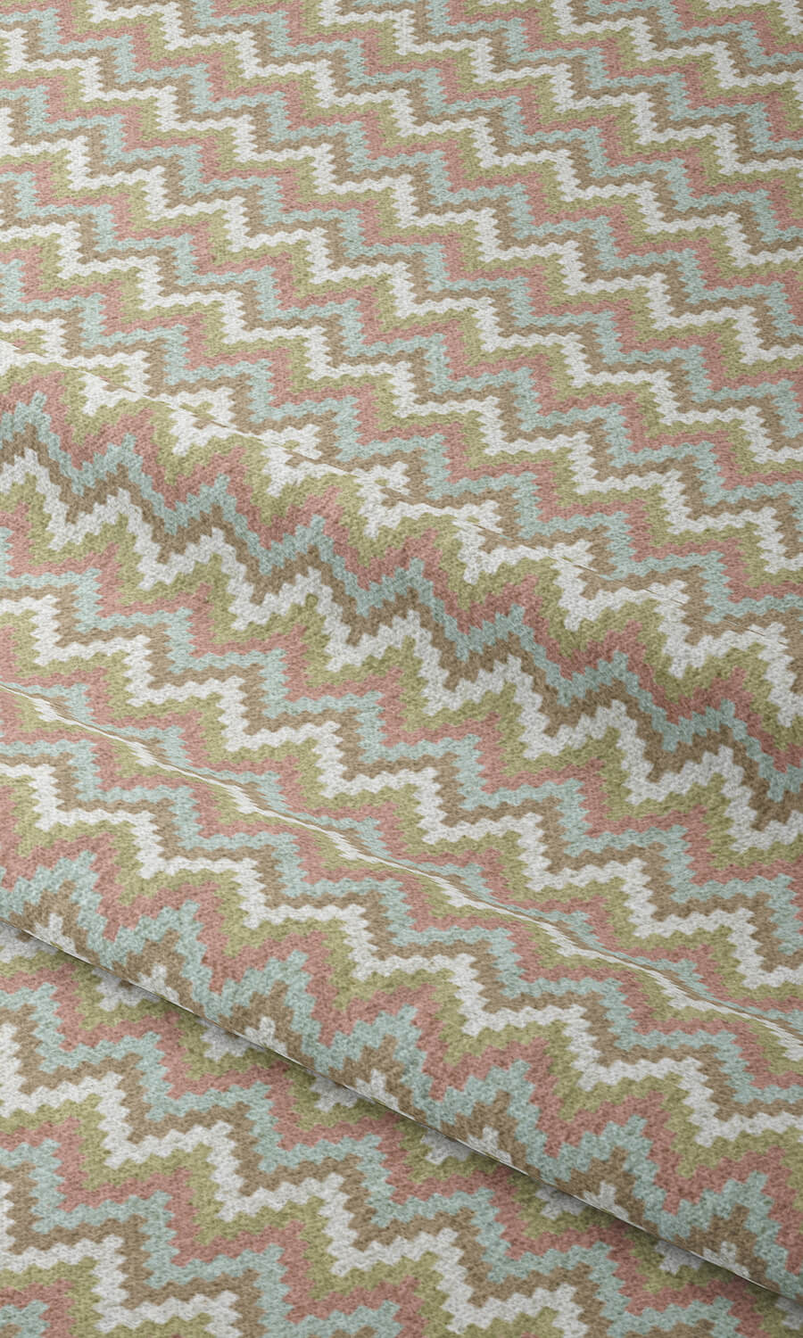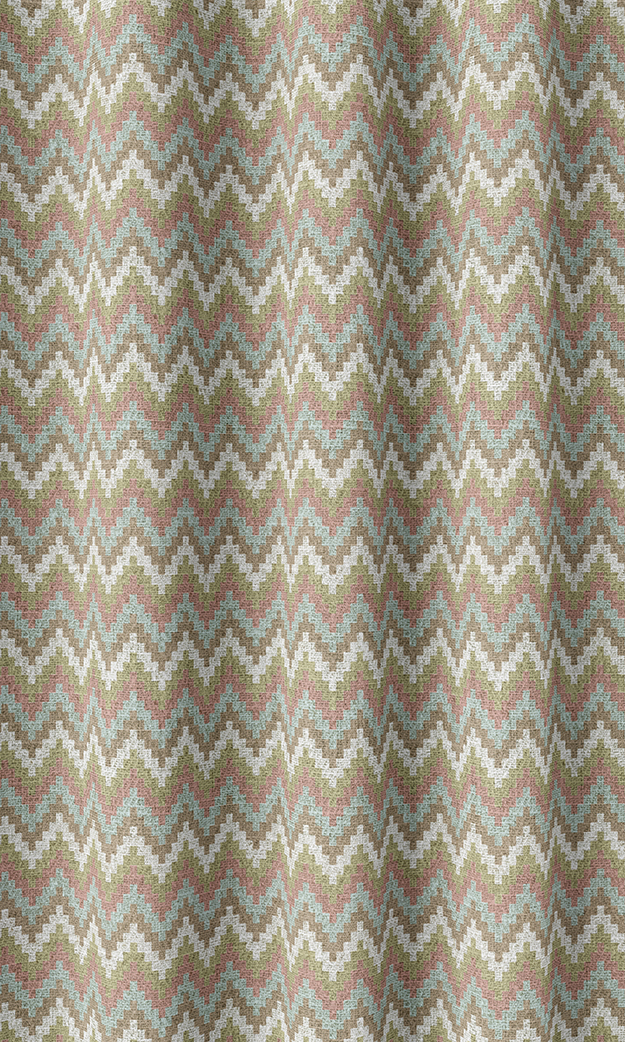 For lovers of geometric designs, this chic fabric featuring medium-scaled chevrons is an out-and-out pick. It?s an enticing mix of an energetic pattern and a muted color palette. Mauve, powder blue, and olive green offer a sophisticated coloration suitable for pared-back interiors while the playful motif lends vitality to the space. Drapes and roman shades in this fabric will be an attractive addition to modern and contemporary homes.