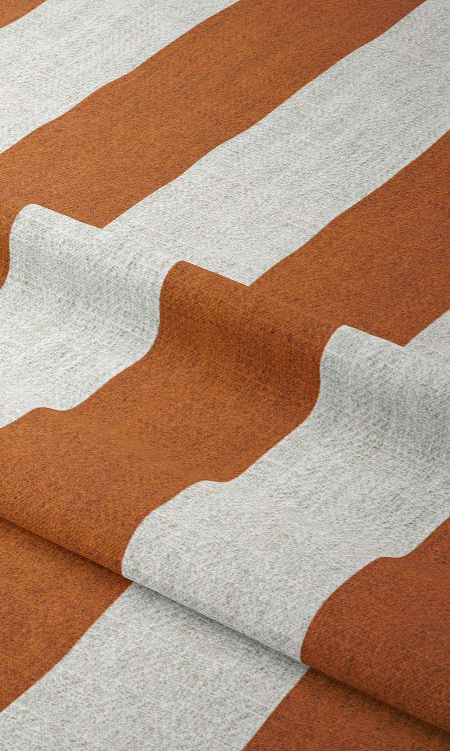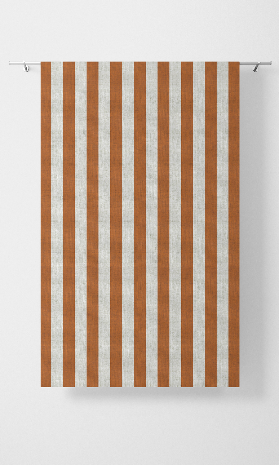 There?s nothing quite like a clean, minimalist stripe to modernize a room, and Sunset will bring a contemporary touch to even the most traditional of spaces. Featuring burnt orange stripes on white, with a texturally rich base of herringbone weave, the fabric hangs beautifully as both curtains and shades, and gives an illusion of height when hung from the ceiling.
