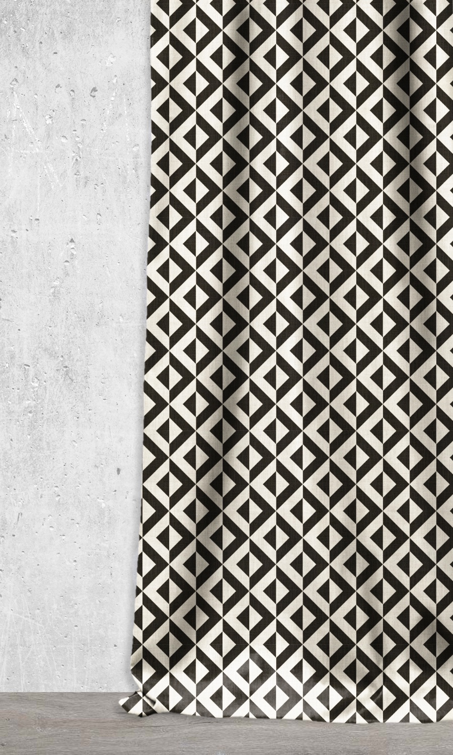 Add zig-zag pizazz to your living room or bedroom with this update on a classic pattern. Get contemporary-chic roman shades or drapes in one of our casual heading styles from this fabric to give your windows a head-turning, runway look. Its neutral shades of black and cream offer just the right balance to the exuberant pattern and promise to pair easily with similar shades or even bright color pops. Because of its versatile appeal, this fabric feels right at home in Art Deco and other vintage-inspired settings, modern, and industrial-chic spaces.