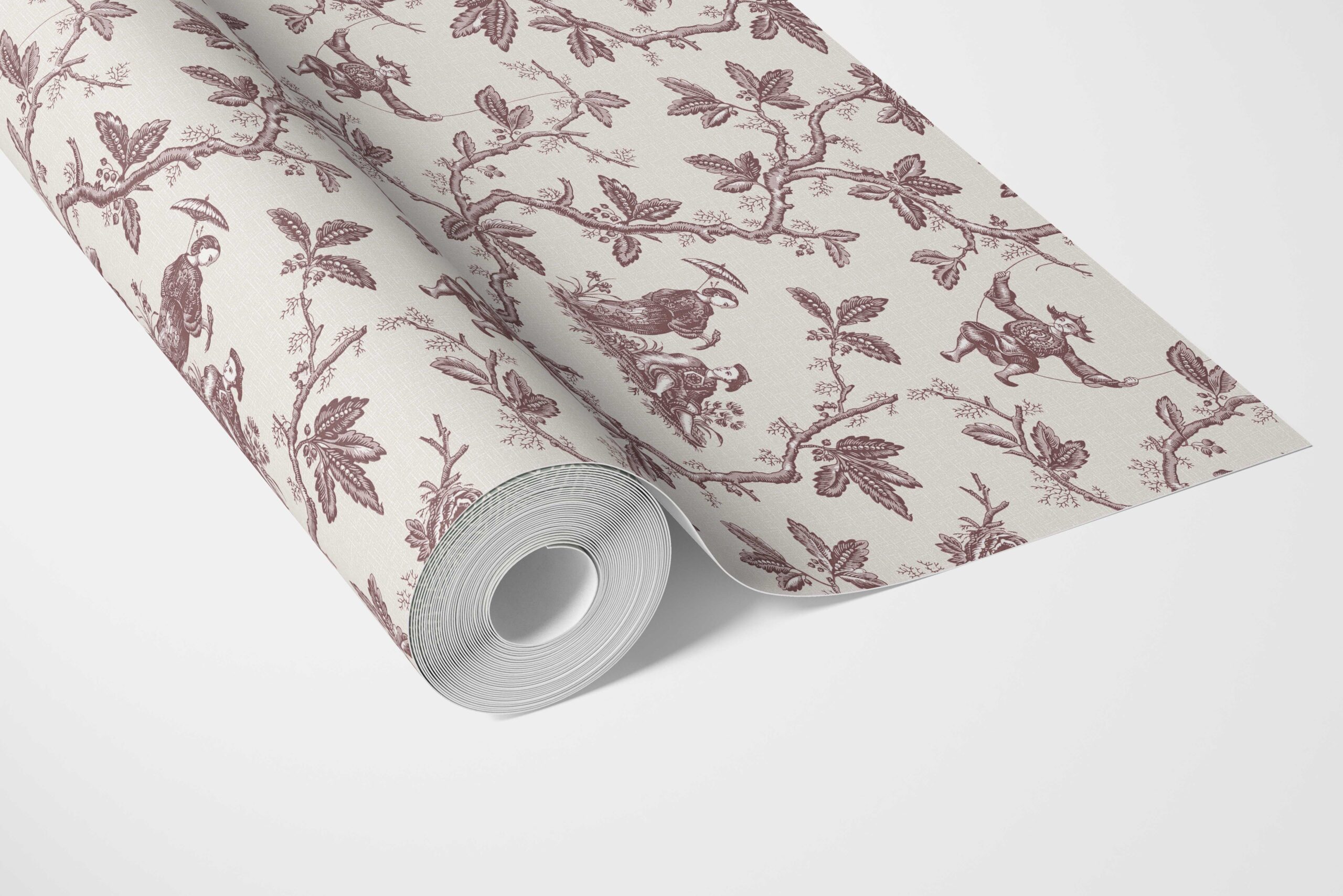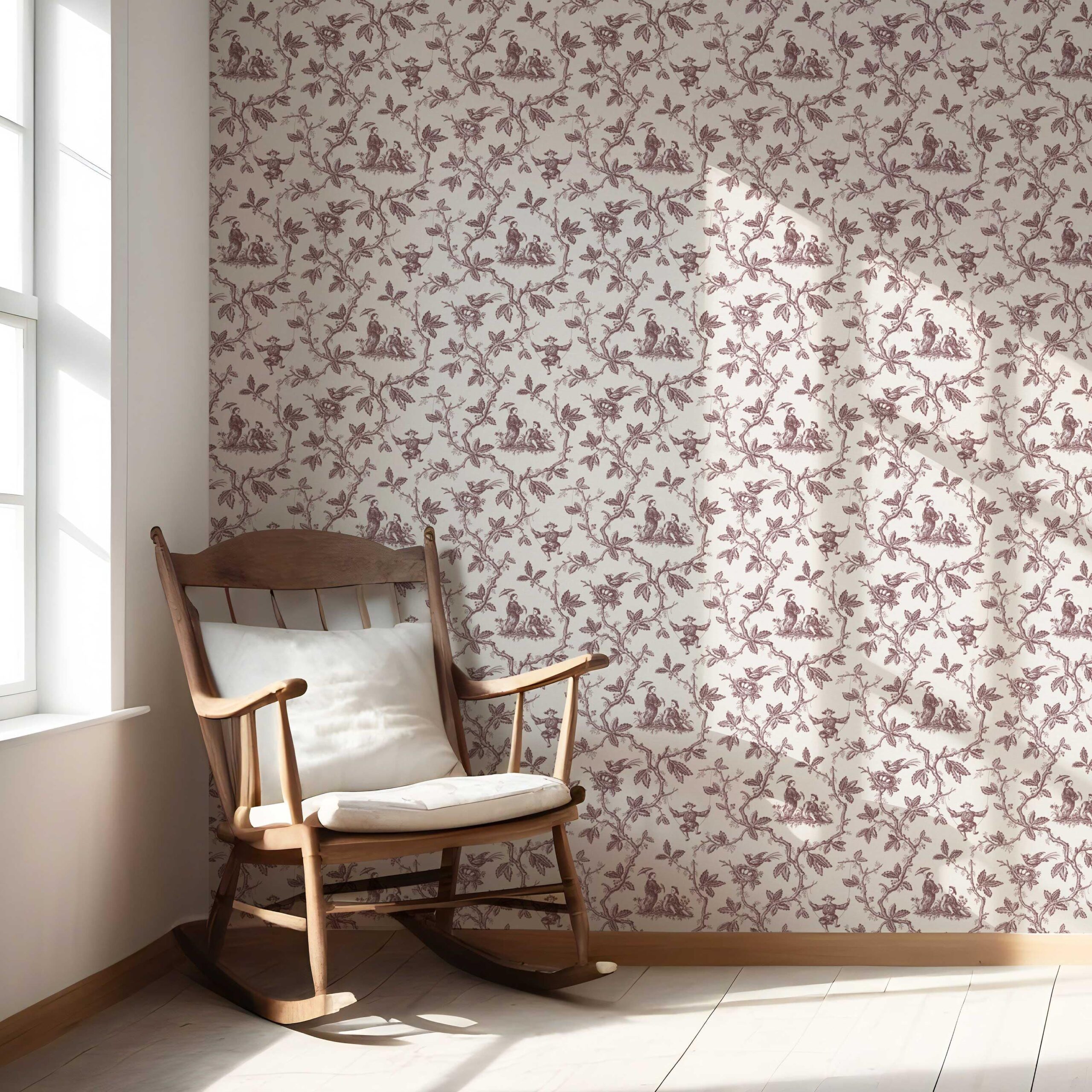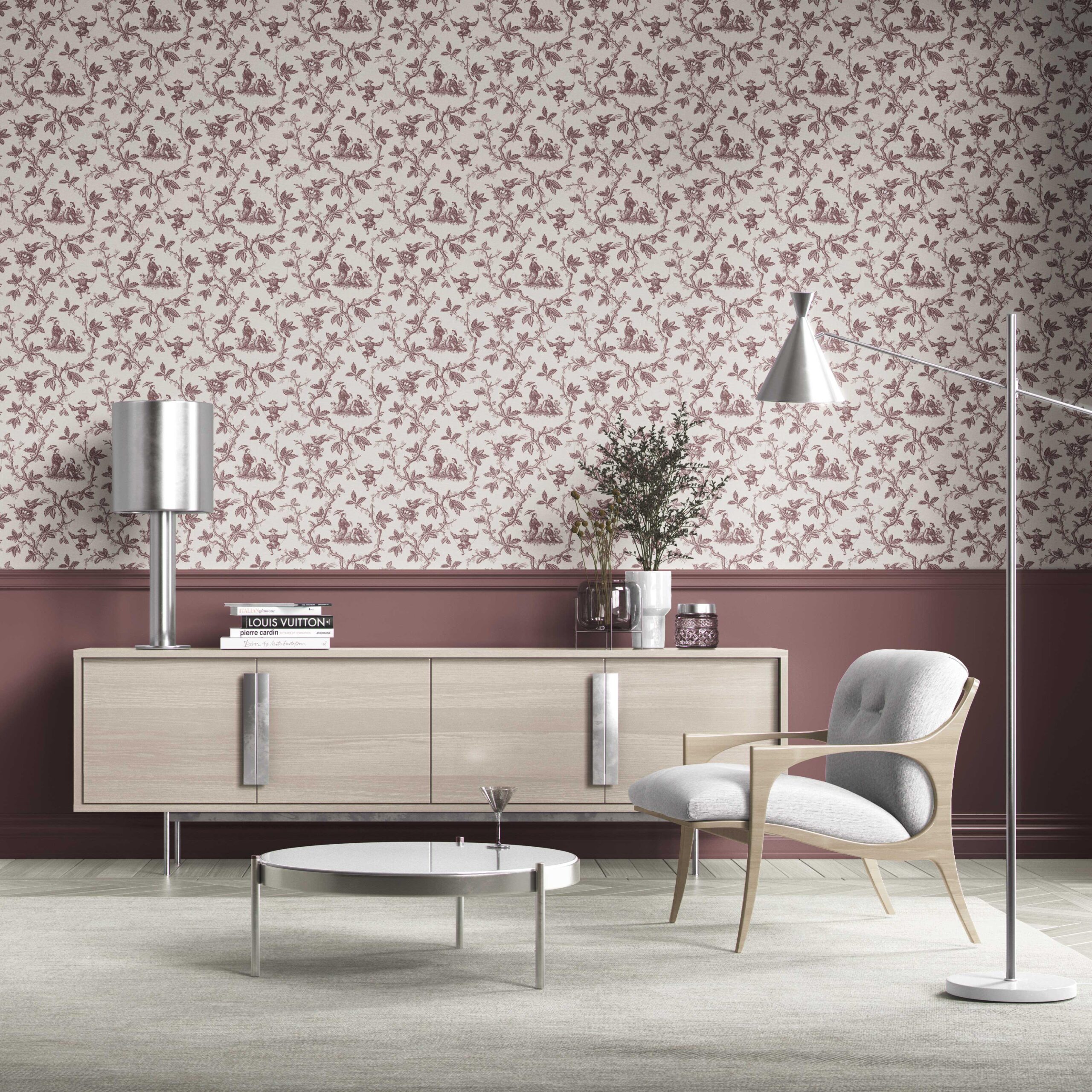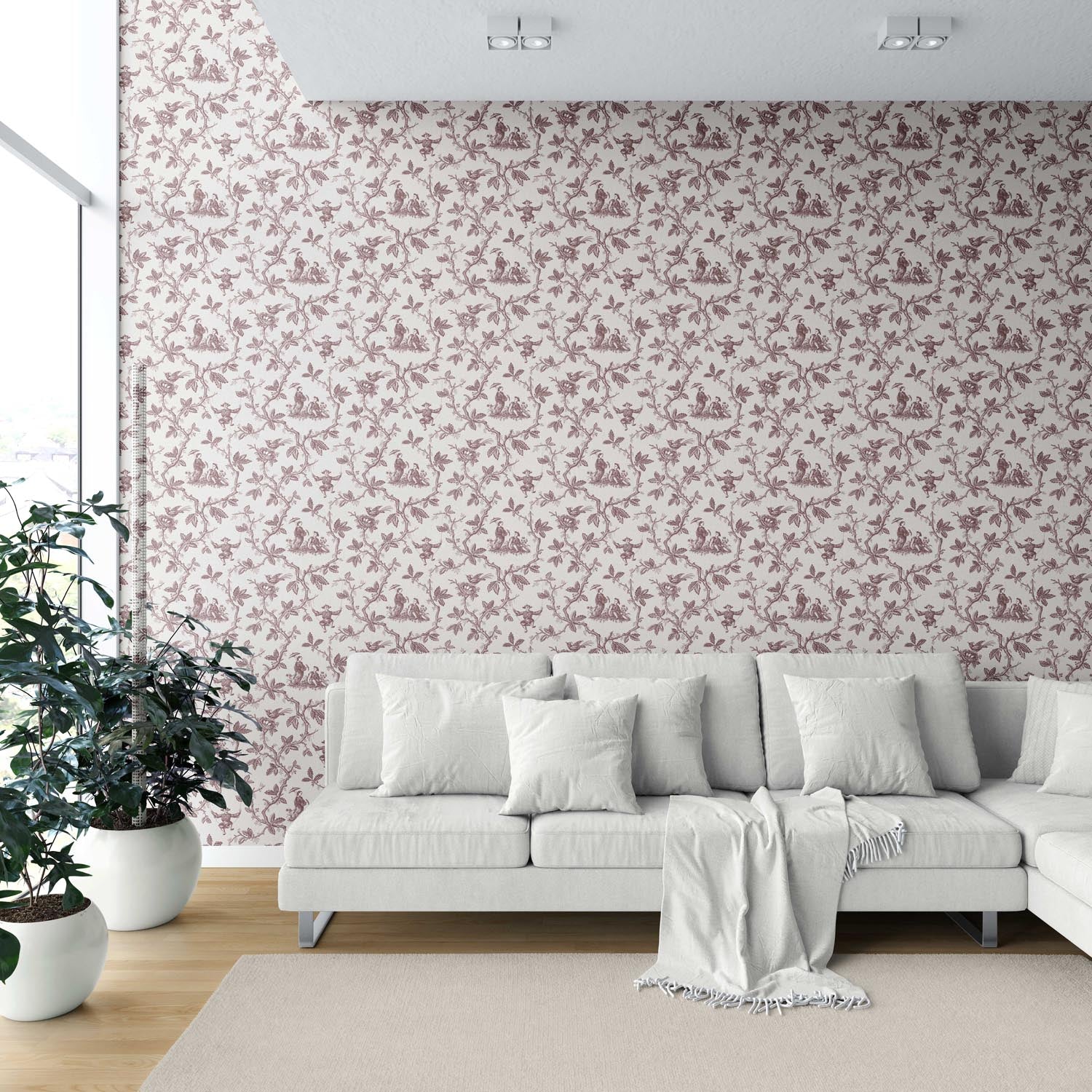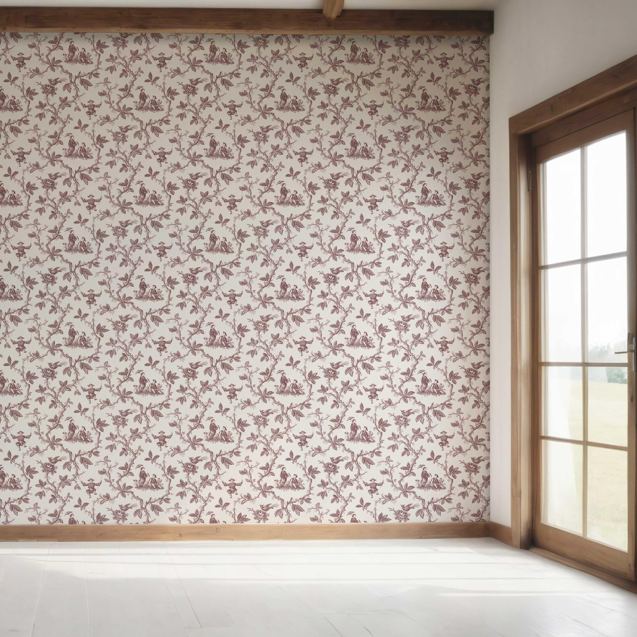 ‘Tamara’ Floral Toile de Jouy Wallpaper (Brick Red/ Deep Pink)