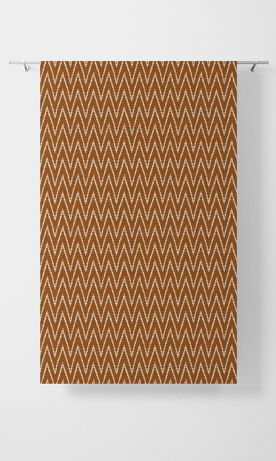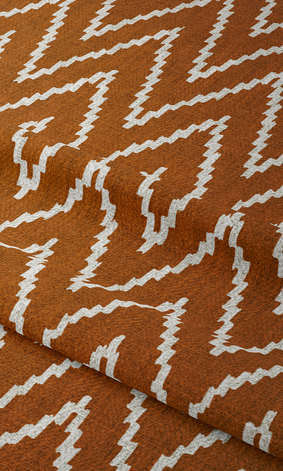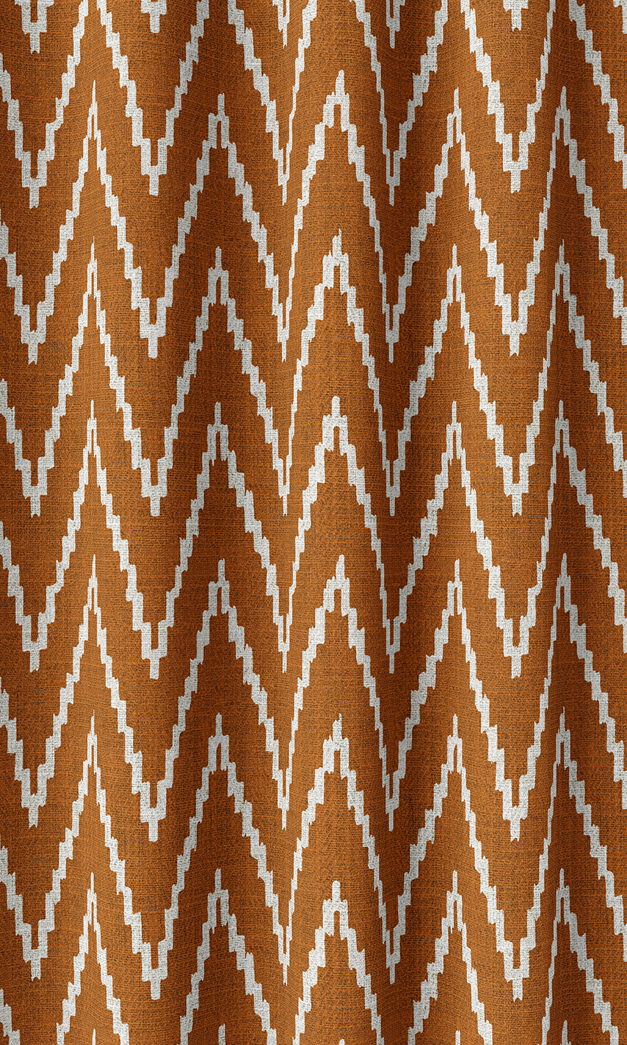 Add zig-zag pizazz to your living room or bedroom with this update on a classic pattern. Get contemporary-chic roman shades or drapes in one of our casual heading styles from this fabric to give your windows a head-turning, runway look. Its trend-right palette of burnt orange and white on a herringbone weave base offers just the right balance to the exuberant pattern. Because of its versatile appeal, this fabric feels right at home in Art Deco and other vintage-inspired settings, modern, and industrial-chic spaces.