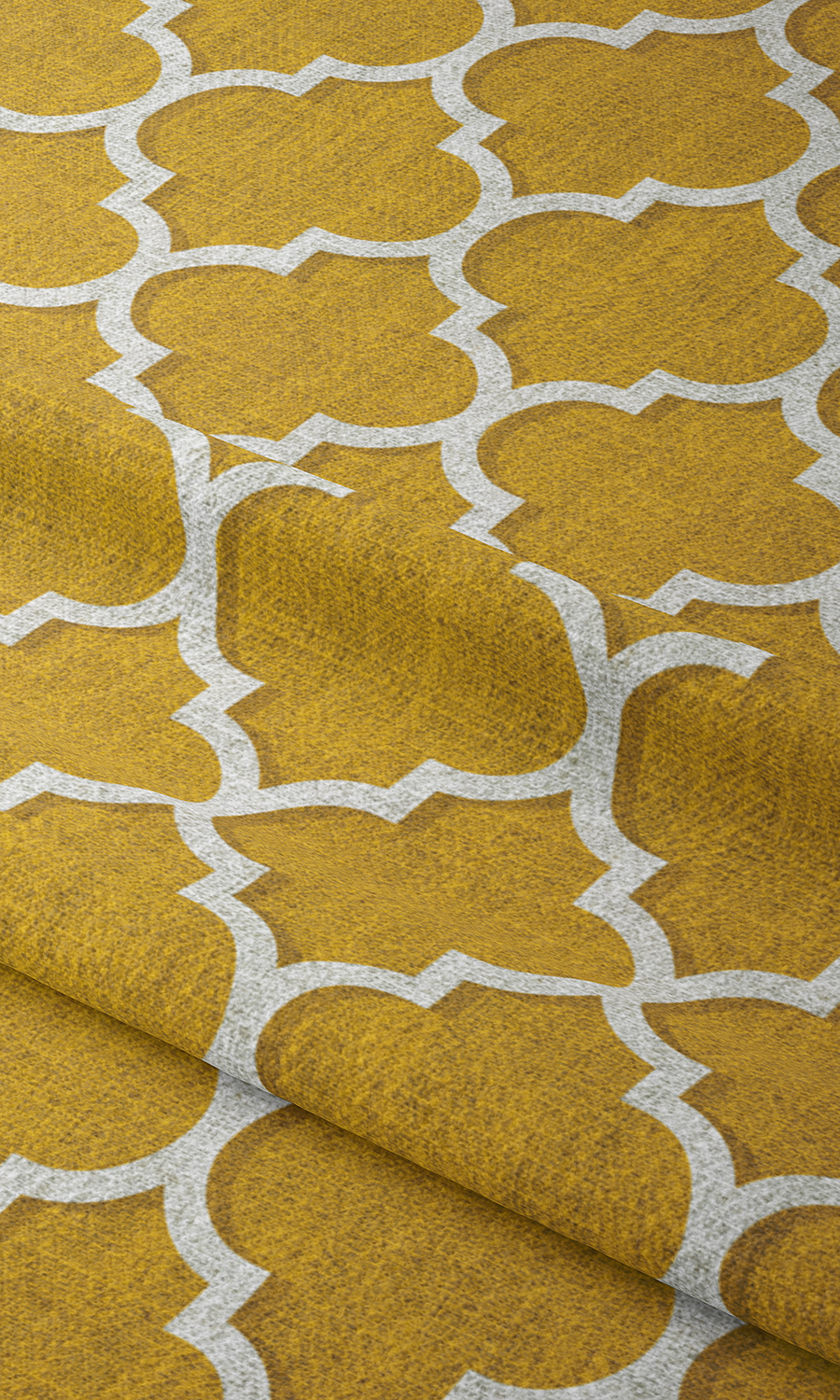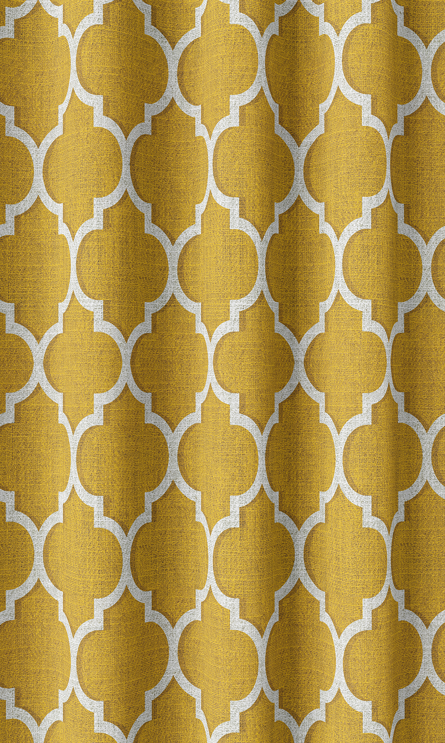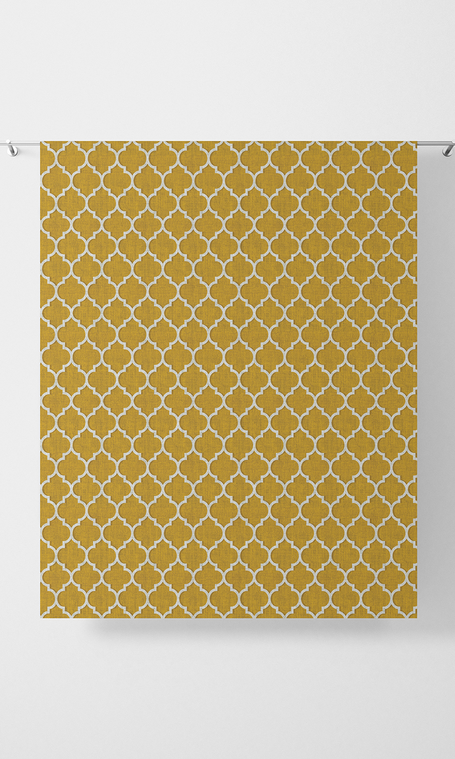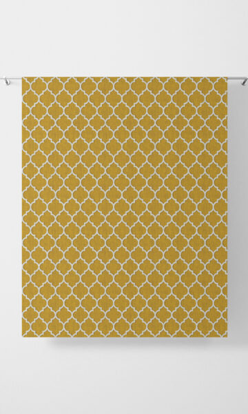 A stylistic interpretation of the classic Moroccan trellis tile pattern. Clean and geometric, it integrates ornate vintage with new age minimalism. The contemporary color palette of mustard yellow and white enhances the understated yet unmistakably elegant appearance. Printed on a texturally rich, herringbone weave base, we recommend this fabric for curtains as well as blinds. Also a good one for children?s rooms.