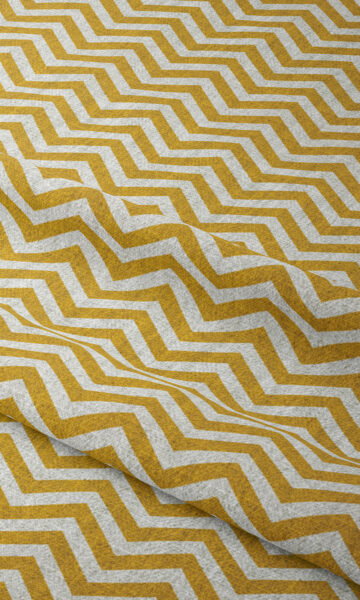 Add movement and depth to your decorative scheme with this dazzling fabric. Lined with chevrons on a herringbone weave base, its trend-right look will effortlessly update your living space. We recommend this fabric for roman shades and modern drapery styles like grommet tops, flat panel top and ripplefolds. Its mustard yellow and white palette promises to pair well with other similar tone hues or bold colors that will balance its arresting pattern, helping you achieve a warm and inviting space.