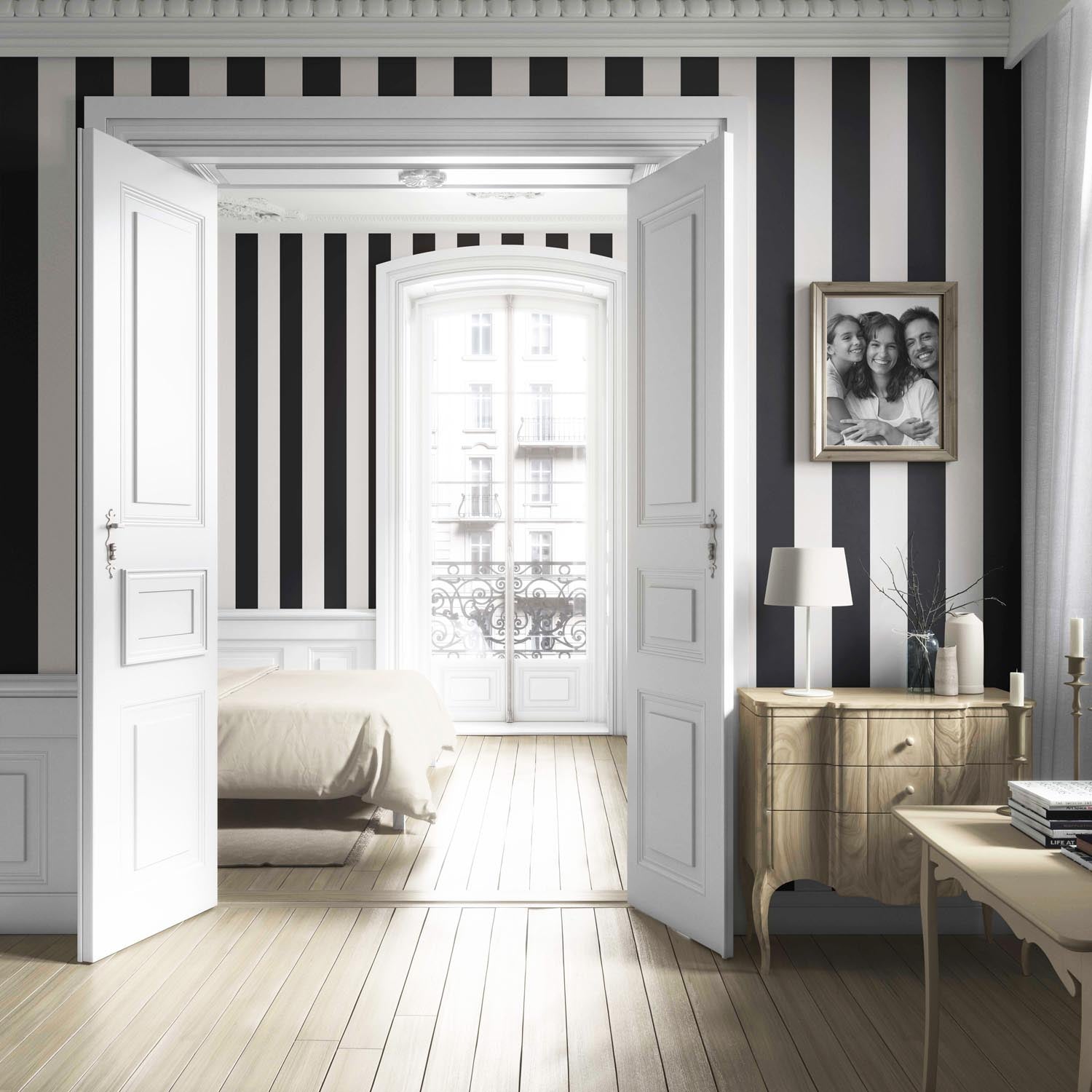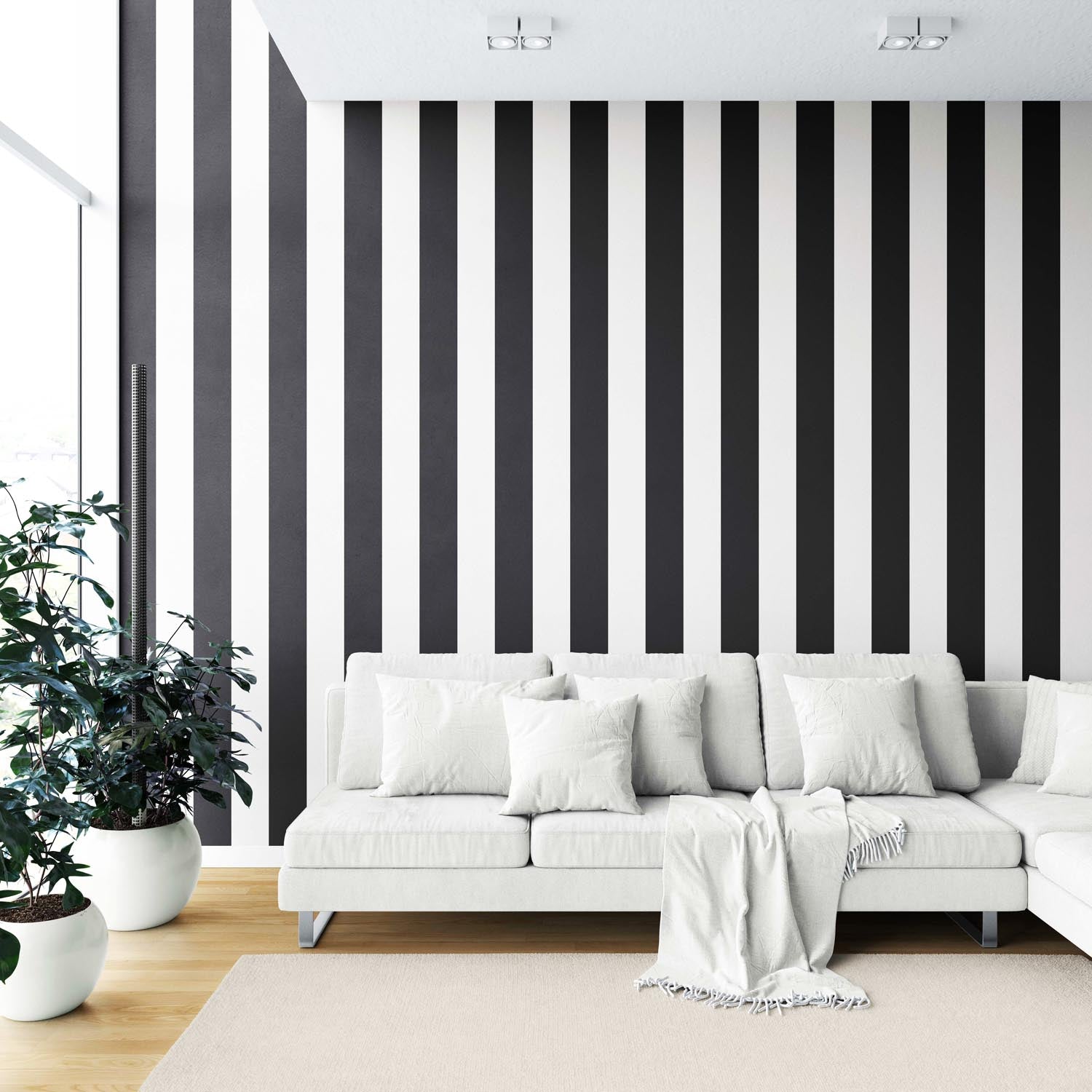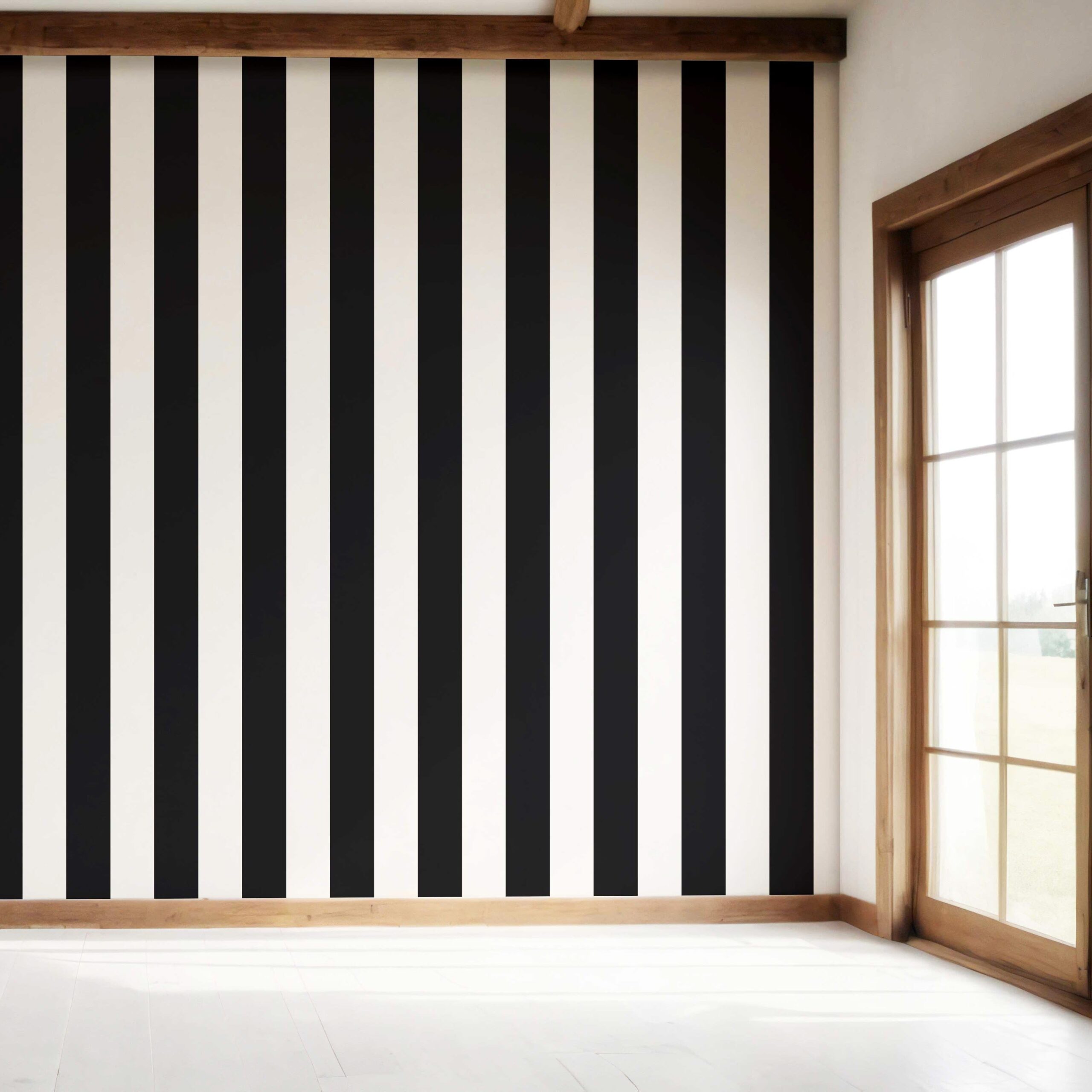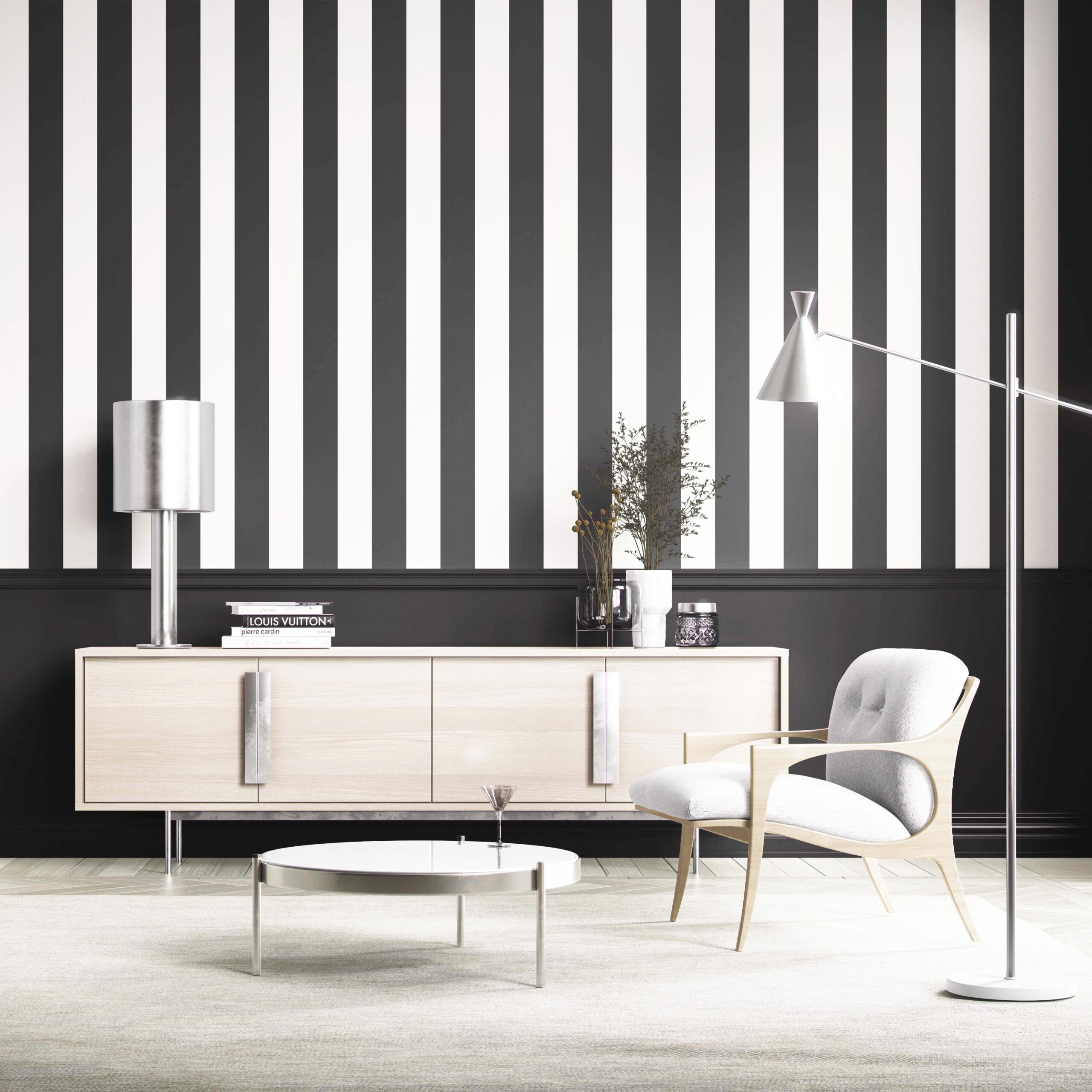 ‘Tidal Manor’ Neutral Geometric Striped Wallpaper (Black/ White)