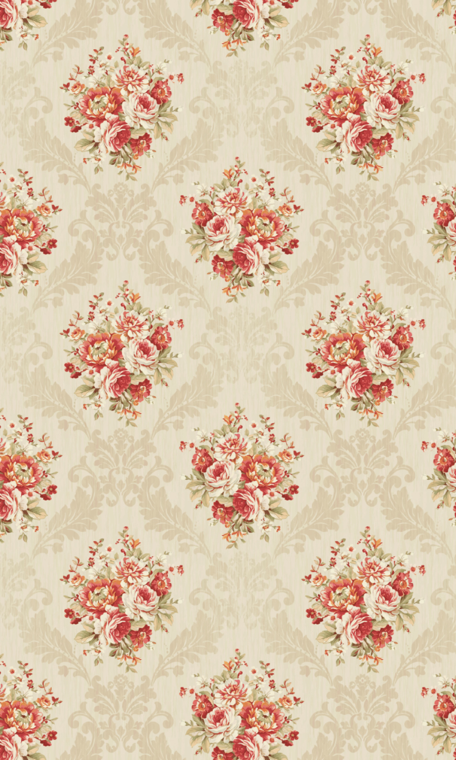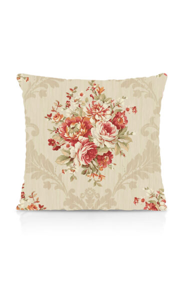‘Toco’ Dimout Floral Custom Drapes (Red/ Creamy-Beige)