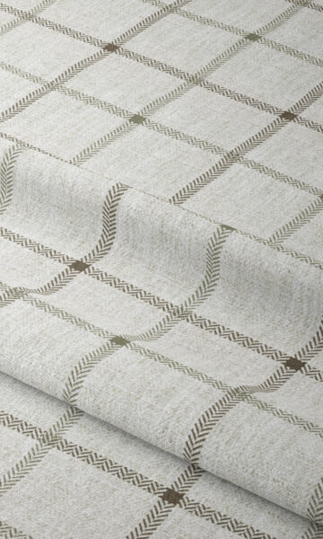 Featuring a big-block plaid pattern of pale beige and mocha brown on a crisp linen white – hues that lend a contemporary twist to the otherwise traditional pattern. Whether you’re fashioning a mid-century modern living room or a restful bedroom, you can use this fabric for drapes and shades that never fail to impress.