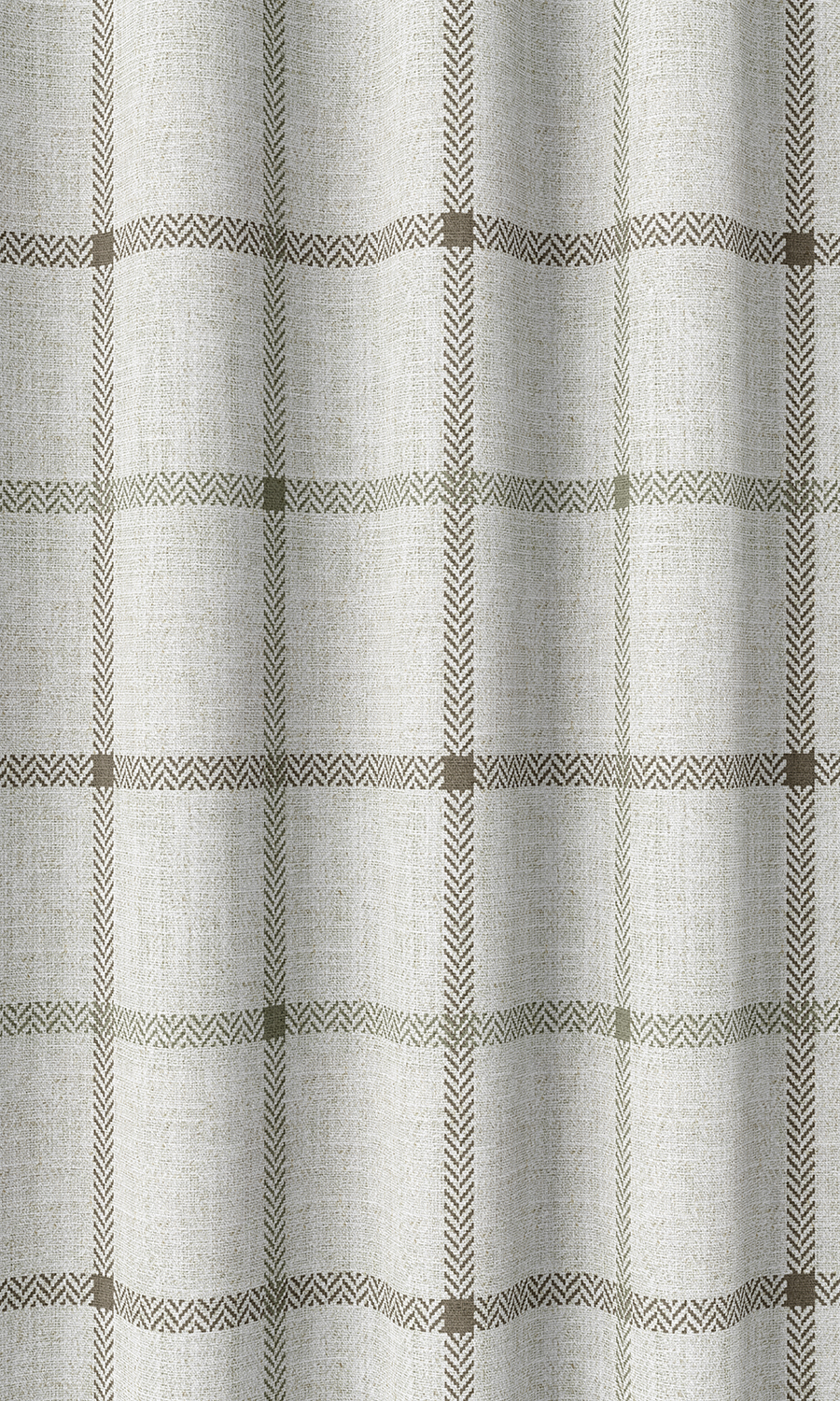 Featuring a big-block plaid pattern of pale beige and mocha brown on a crisp linen white – hues that lend a contemporary twist to the otherwise traditional pattern. Whether you’re fashioning a mid-century modern living room or a restful bedroom, you can use this fabric for drapes and shades that never fail to impress.?