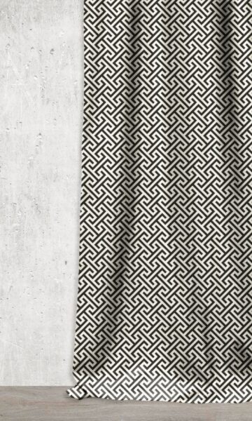 Create a bold look for your windows with this flatweave fabric adorned with a bold labyrinth pattern. The maze-like design features thick black lines set atop a field of warm white. The colors promise to pair easily with any decorative scheme while the pattern is sure to enliven your living space. Use this eye-catching pattern to add visual appeal to your living room, bedroom, or home office.