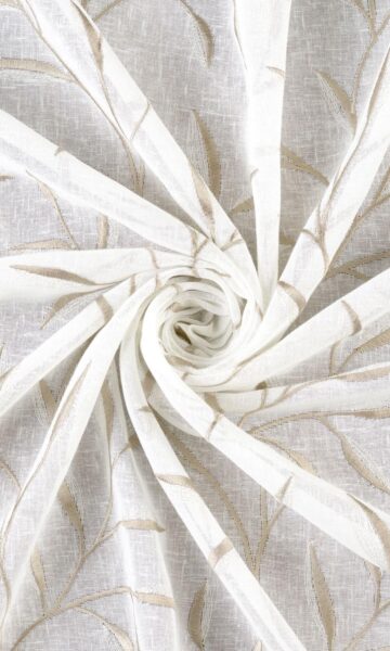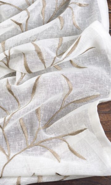 An irresistible white sheer with nimble needlework of slender botanical motifs. If you are a fan of white sheers but keen on something a bit different, Utopia will be a tempting alternative. Its brown vine motifs add unique character to the space without compromising white’s serenity – quietness of modern decor and simplicity of rustic spaces nailed in a single shot. The gauziness welcomes light, the neutral colors spread calm, and the embroidered motifs give a nod to nature’s serene elegance – can’t get better!