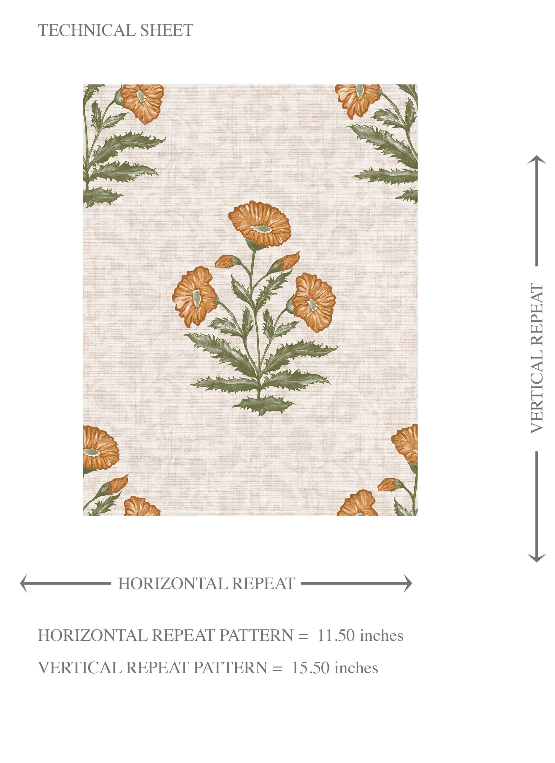 NON-PASTED: ‘Verdant Lawn’ is an unpasted wallpaper installed by applying adhesive paste (not provided by us, but easy to source) to the wall. While peel-and-stick papers do not leave much room to change the paper’s position once you start applying it, the traditional, non-pasted application is more forgiving, allowing for better positioning when matching patterns.