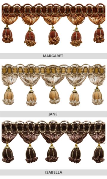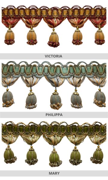 The header is intricately woven and each individual tassel in this trim is hand tied by expert artisans, making each bobble unique. We therefore expect very minor variance between trims and tassels.
