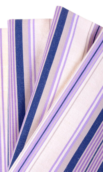Violet is the color of spirituality, purple is always for the royalty, and white is ever for peace. Vynuoge is the fabric that brings all three together in one fabric to imbue your interior with harmony. 100 % cotton with stripes of varying widths in violet, purple and white, this fabric is pure peace, grace and poise.