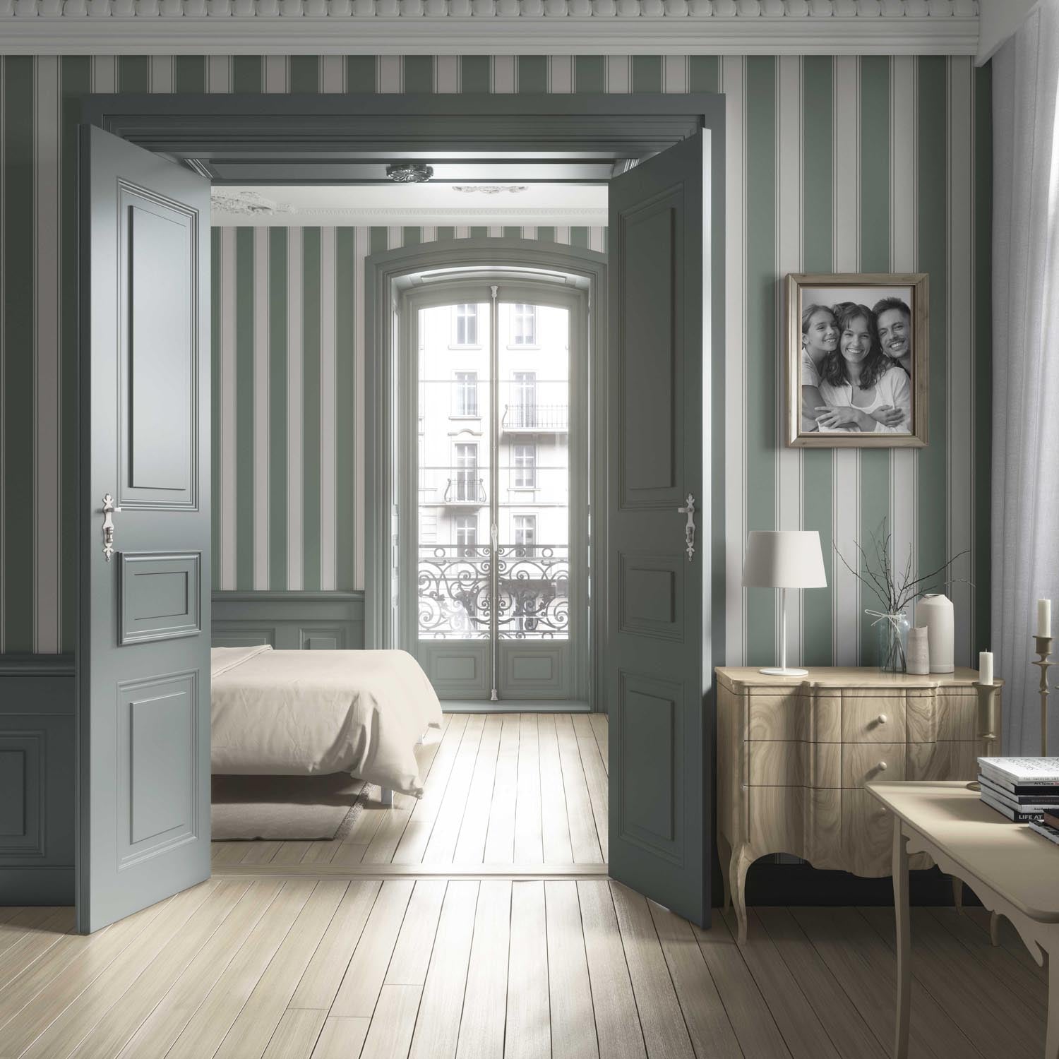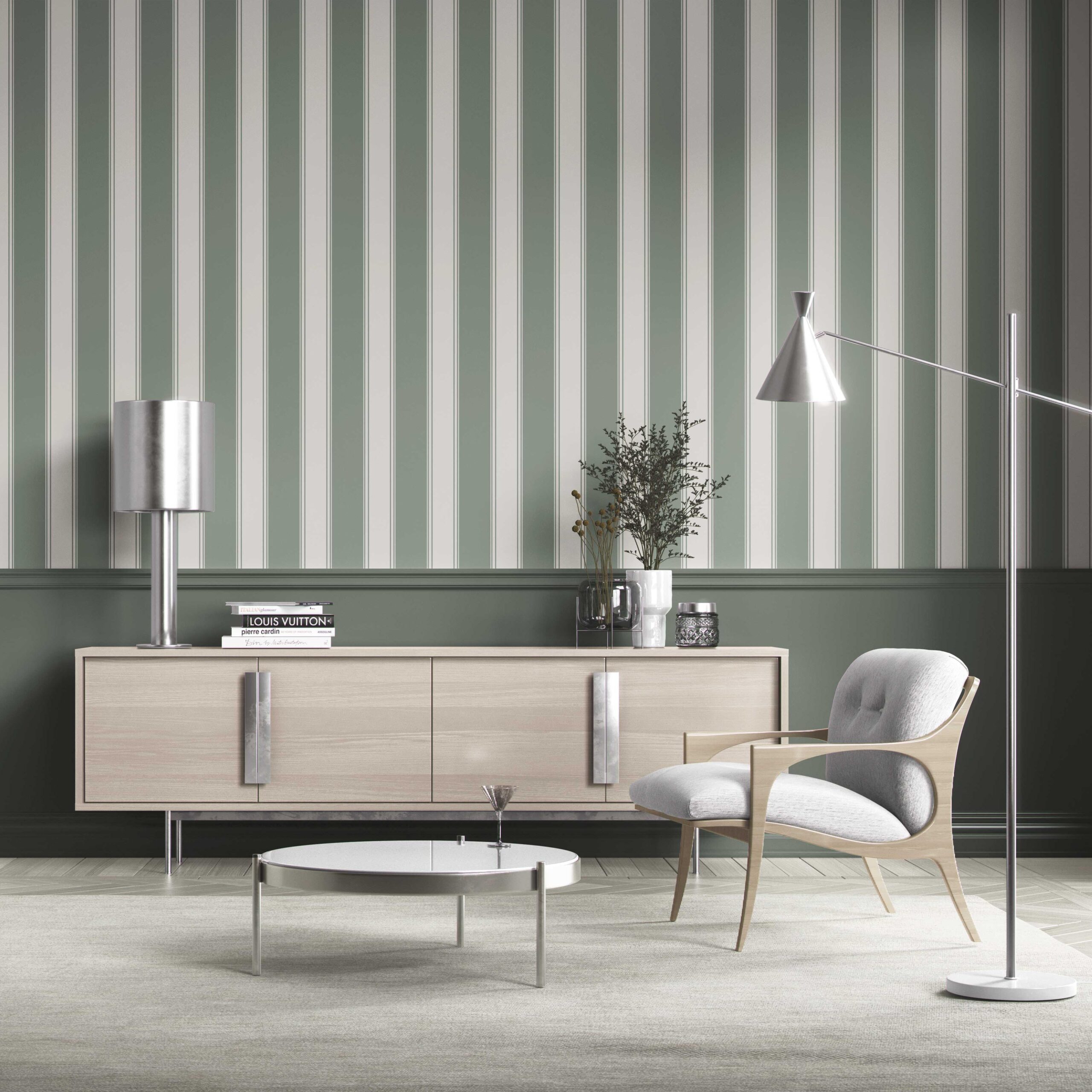 FINISH: ‘Vynuoge’ is in a textile-inspired, feather-textured, matte-lustre finish, which feels luxurious to the touch. Designed to absorb rather than reflect light, it lends your walls a soft depth and a refined, high-end feel.