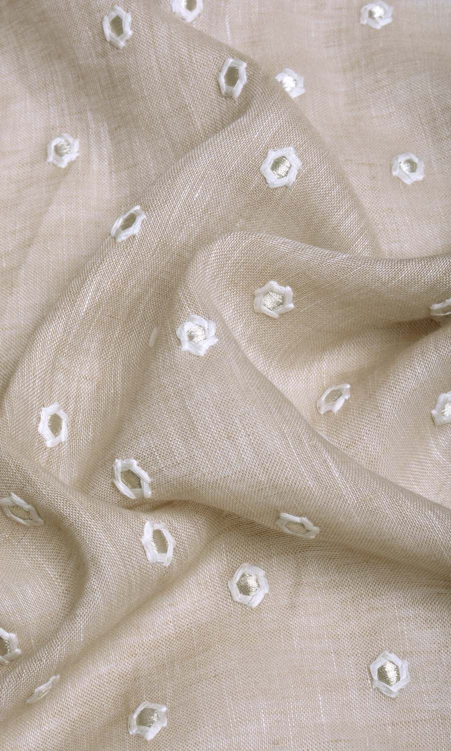 Infuse understated charm in your room with these sober yet stunning pure linen drapes. Their natural beige base has been embroidered with small white flowers all over. Their semi-sheer fabric helps these drapes gently diffuse incoming natural light. Just the window dressing for a soothing and calming feel in your interior!