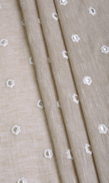 Infuse understated charm in your room with these sober yet stunning pure linen drapes. Their natural beige base has been embroidered with small white flowers all over. Their semi-sheer fabric helps these drapes gently diffuse incoming natural light. Just the window dressing for a soothing and calming feel in your interior!