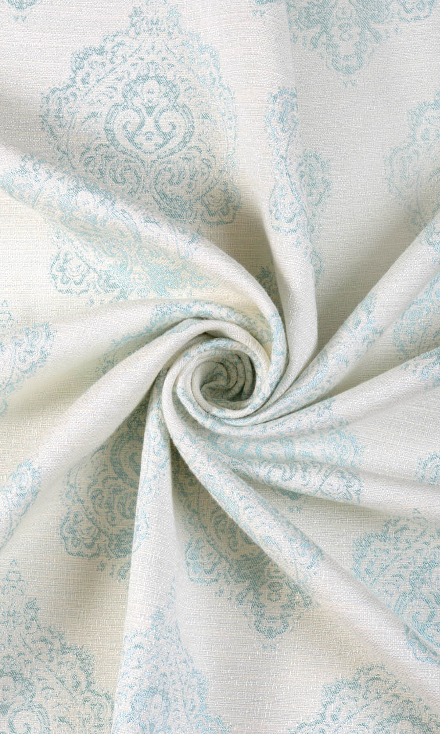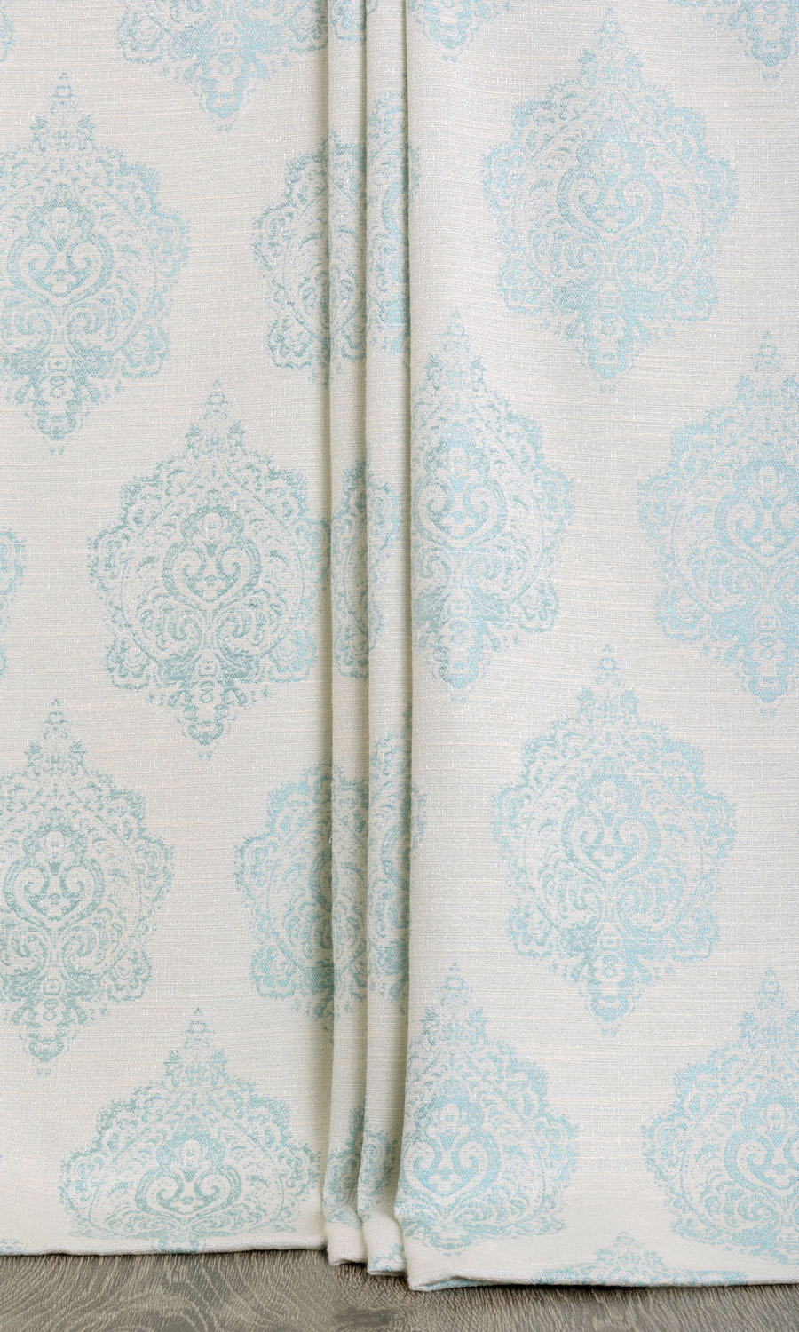 ‘Wasser’ Damask Poly-Cotton Bespoke Drapes (White/ Blue)