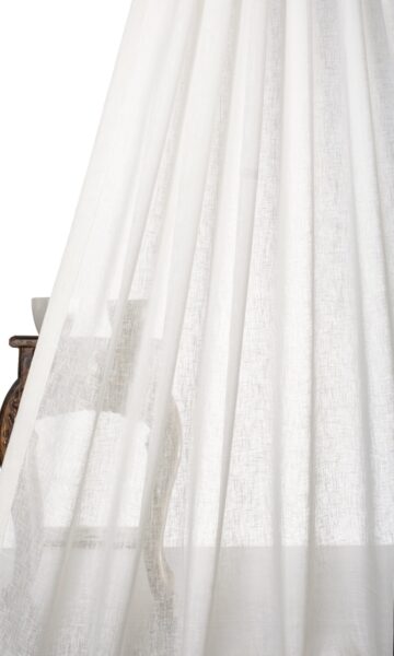 A delicate off-white sheer that exudes quiet sophistication, infusing your space with soft, diffused light. This fabric featuring a gauzy weave and subtle texture gently filters sunlight without compromising daytime privacy. Its tranquil off-white hue adds a touch of warmth to any room, offering a serene and graceful backdrop. ‘Ivory Gull’ is the epitome of understated elegance ? a soft, airy veil that enhances the beauty of your home with its timeless charm, providing both privacy and a radiant, glowing ambiance.