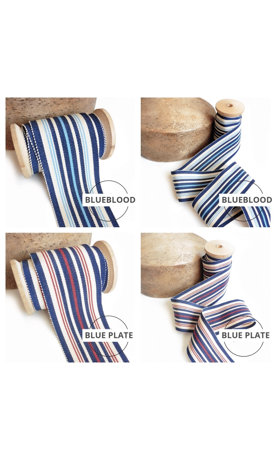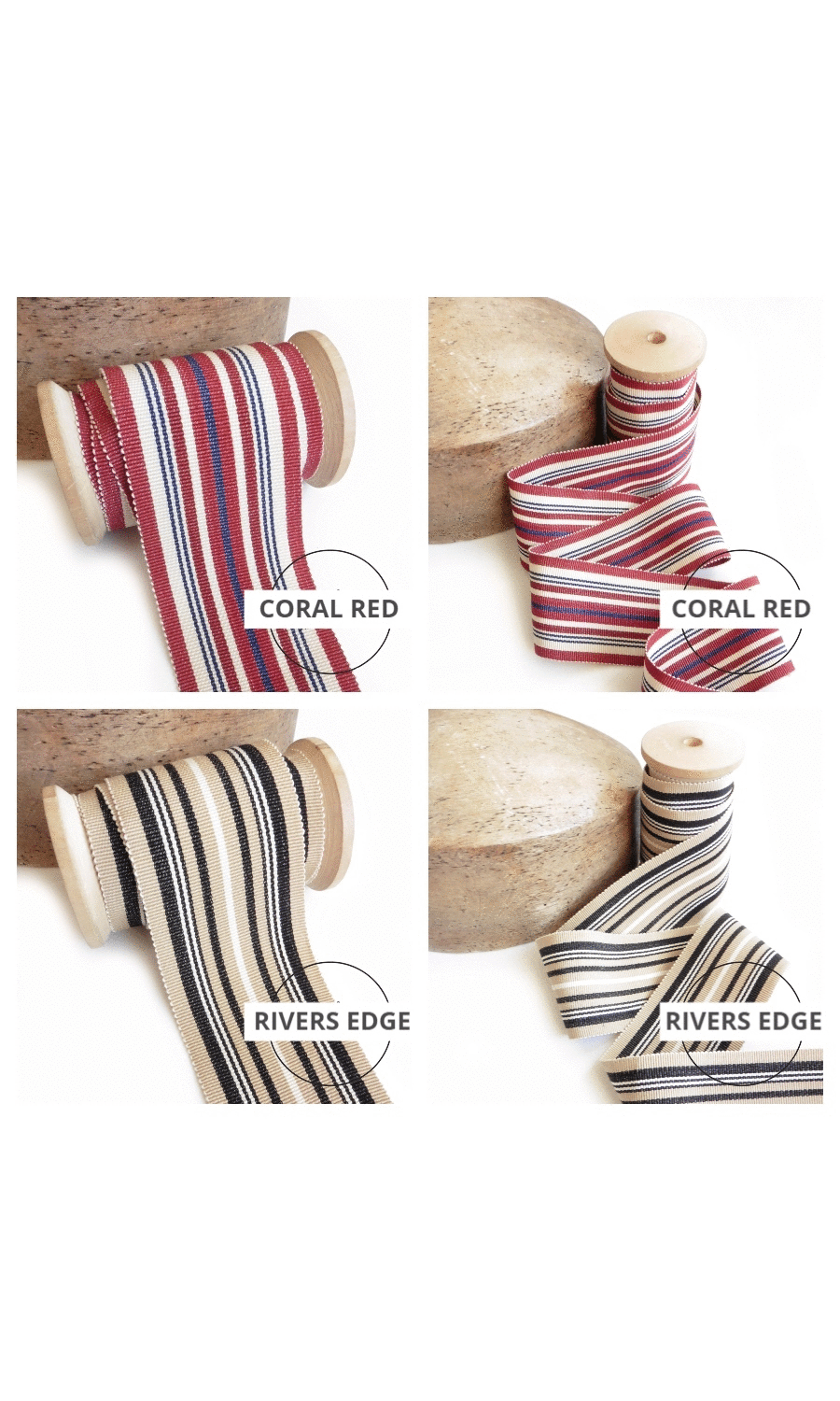 This lovely ribbon trim is not only extra wide at 54 mm, but it’s striped as well! With the coveted picot edge, it is designed to lend a perfect finishing touch on your curtains from Spiffy Spools. Trims in this collection are 100% cotton, available in four colorways and come to us all the way from France.