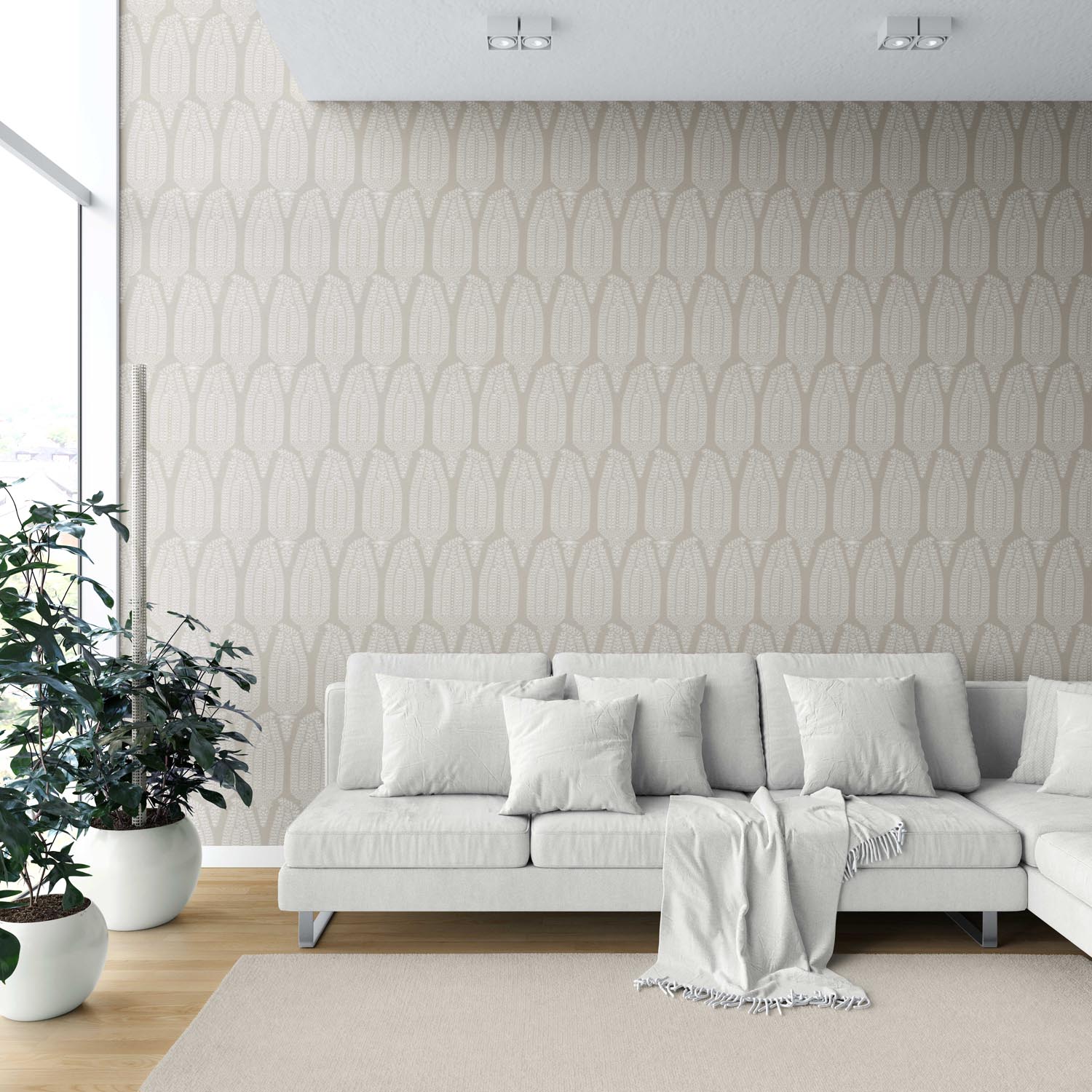FINISH: ‘Wind Willow’ is in a textile-inspired, feather-textured, matte-lustre finish, which feels luxurious to the touch. Designed to absorb rather than reflect light, it lends your walls a soft depth and a refined, high-end feel.
