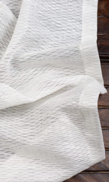 A uniquely woven white sheer loaded with beautiful texture and gentle luster. Its lacy texture that imitates a tessellated brick path’s intricacy has an end-to-end transparent elliptic pattern overlayered with a delicate sheen. Winding Path is for homes that need a white sheer but with a difference to express a bespoke touch, a special visual appeal and a ton of personality.
