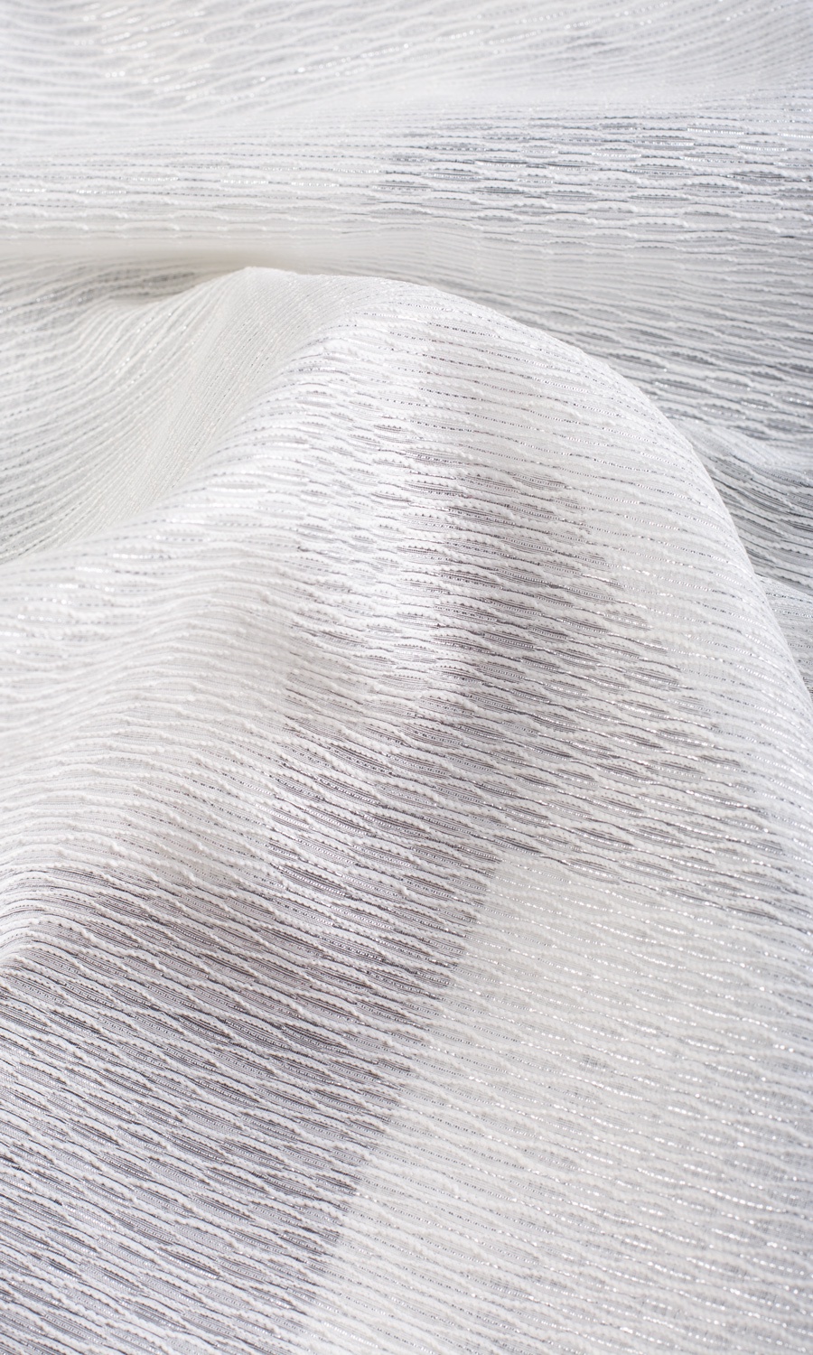 A uniquely woven white sheer loaded with beautiful texture and gentle luster. Its lacy texture that imitates a tessellated brick path’s intricacy has an end-to-end transparent elliptic pattern overlayered with a delicate sheen. Winding Path is for homes that need a white sheer but with a difference to express a bespoke touch, a special visual appeal and a ton of personality.