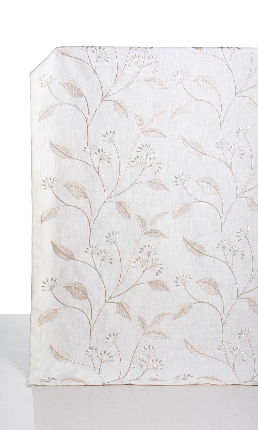 Speaking more with few words, this cream drapery fabric presents floral motifs with subtle contrasts and artistic finesse. Leaves and blooms on slender stalks, embroidered delicately in a tone-on-tone cream finish, give off the sophisticated flair of the nature theme impressively. The neutral palette ensures easy blending with diverse color schemes and decor styles.