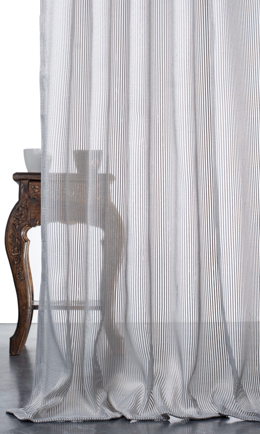 Merging two timeless themes – the immaculate beauty of neutral gray hue and the simple elegance of stripes – ‘Soft Mist’ vouches its candidature for a lifelong addition to any home. Playing hide and seek with its woven pattern, light streams into the home painting veined shadows on the walls. Finish a modern home with this self-striped sheer that offers the uncluttered aesthetic of cream and the clean-lined finishes that speak to its minimalism.