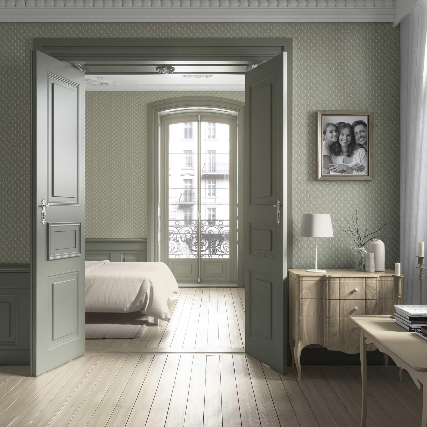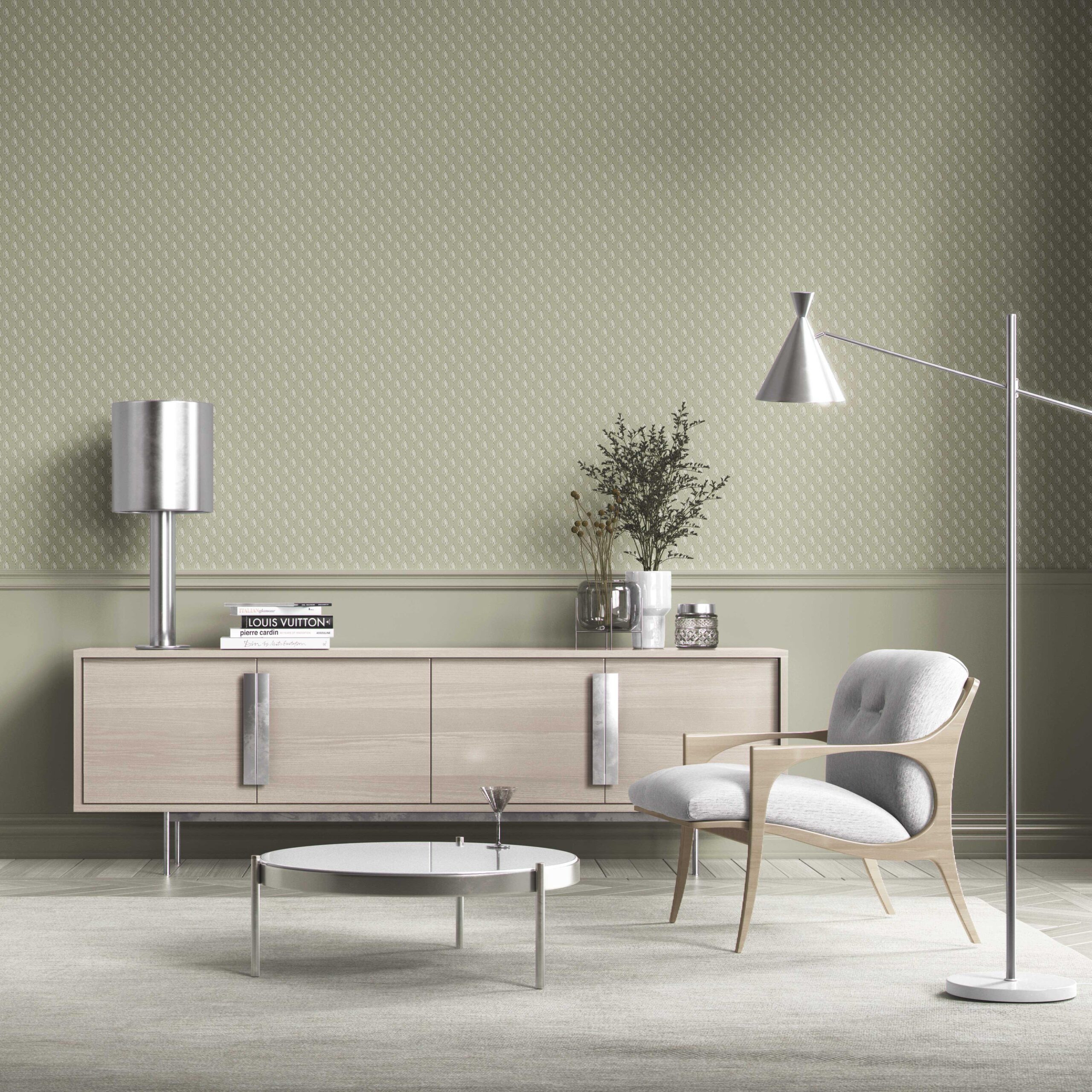 FINISH: ‘Wisterias’ is in a textile-inspired, feather-textured, matte-lustre finish, which feels luxurious to the touch. Designed to absorb rather than reflect light, it lends your walls a soft depth and a refined, high-end feel.
